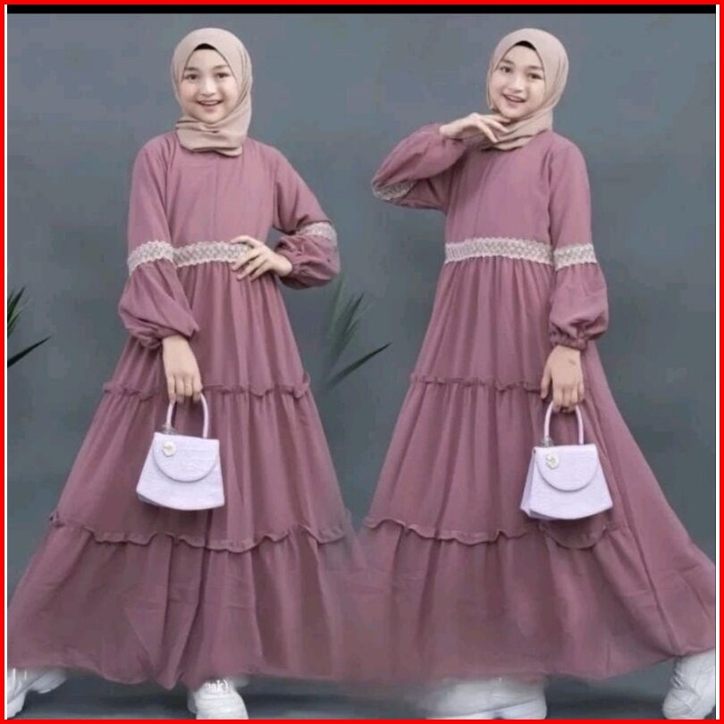 Baju Gamis Anak Putih Perempuan Usia 4-13 Tahun Variasi Renda Bahan Crinkle Airflow Terbaru Kekinian