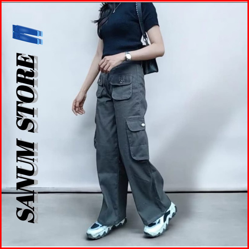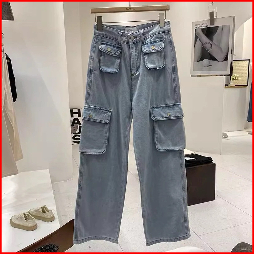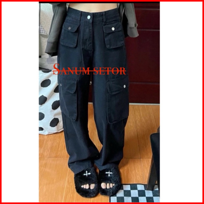 Celana Cargo Jeans Korean Stayl Hight Waist Preium