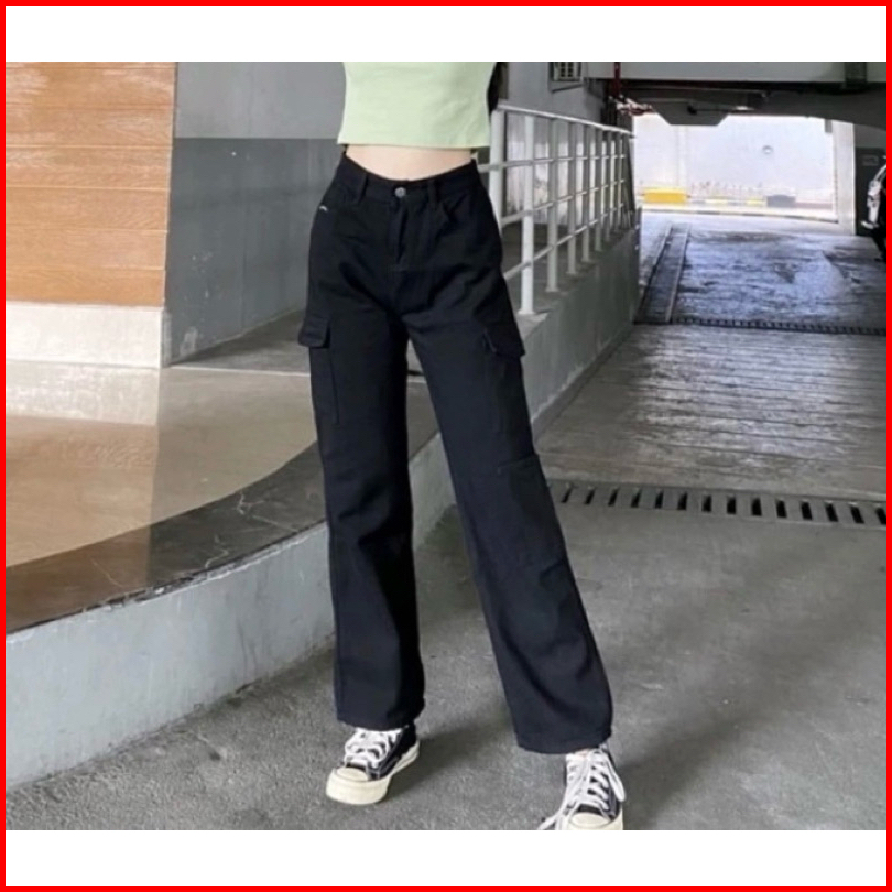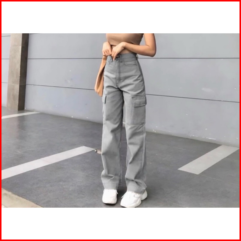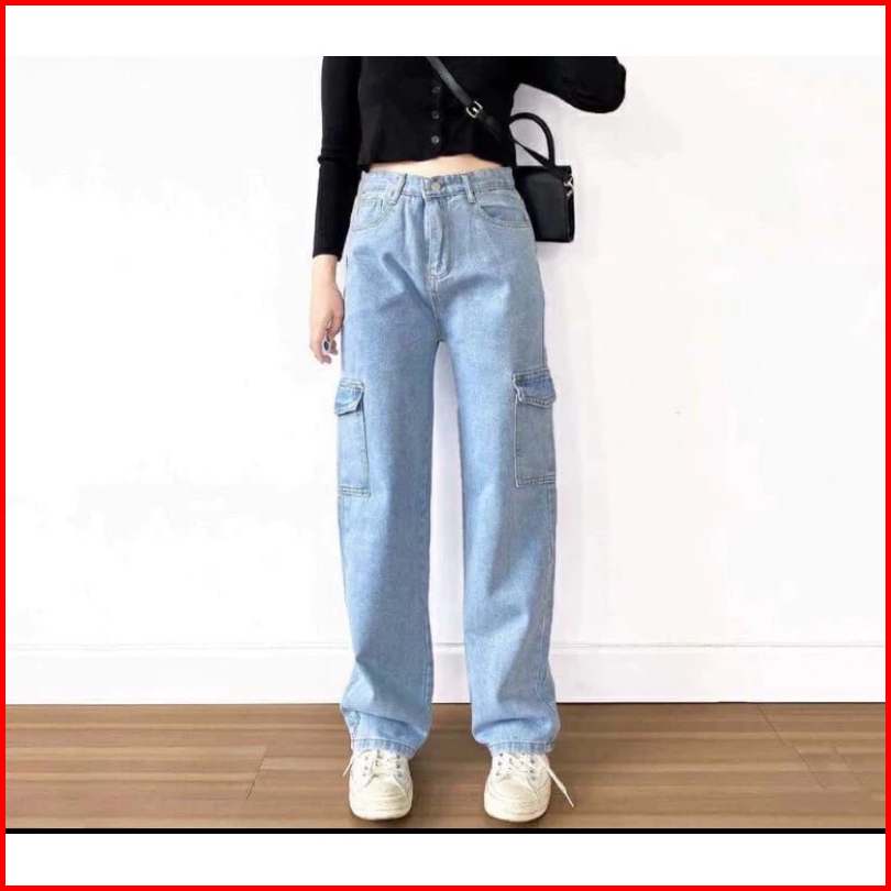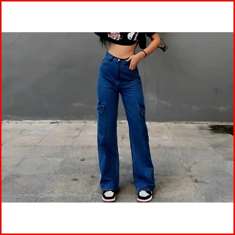 Celana Haigwaist Jeans Cargo Kekinian-celana Cargo Jeans Wanita-celana Cargo