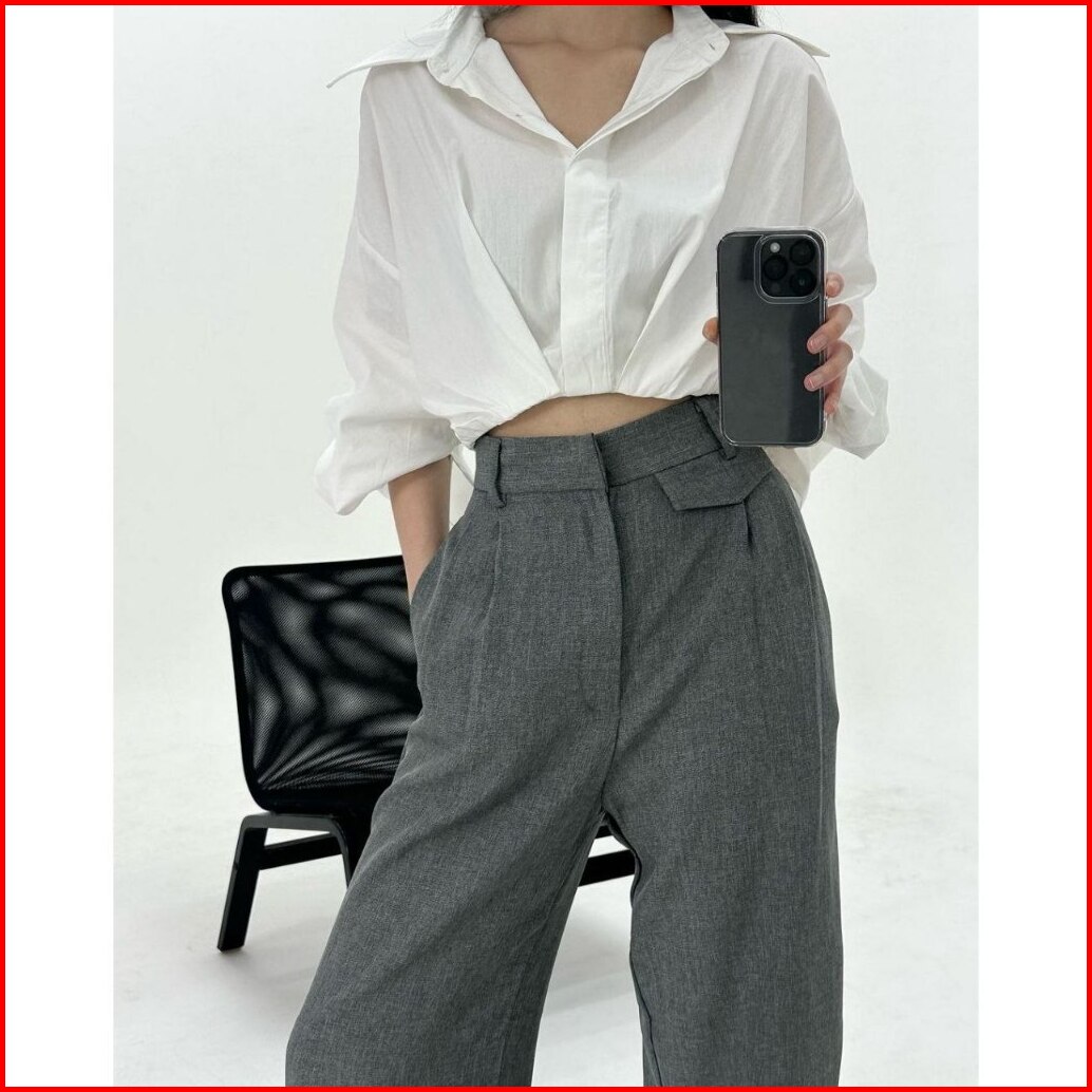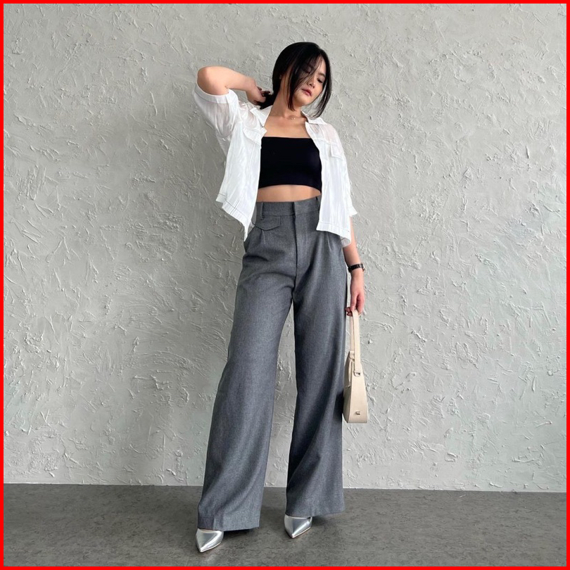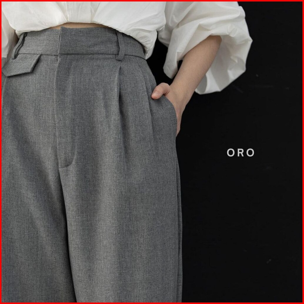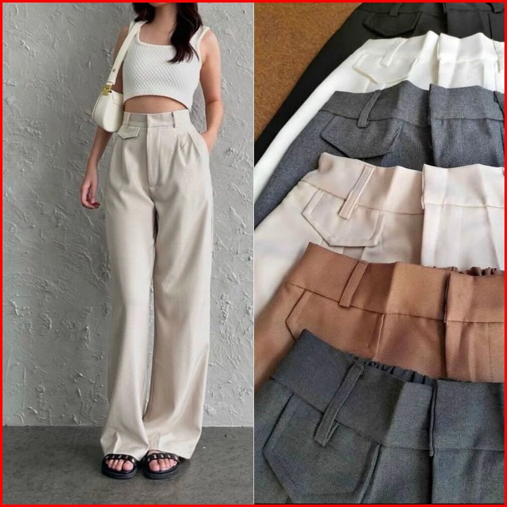 Highwaist Oro Pants Semi Wol Beige Loose Trouser Celana Wanita Elegant Anti Kusut