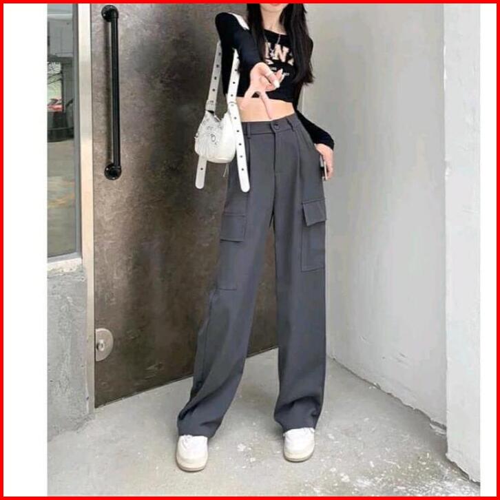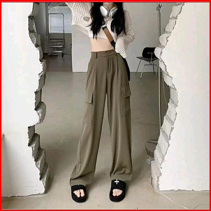 Celana Cargo Highwaish Celana Cargo Wanita