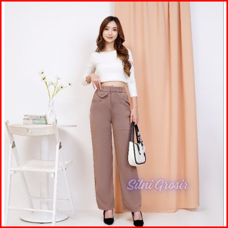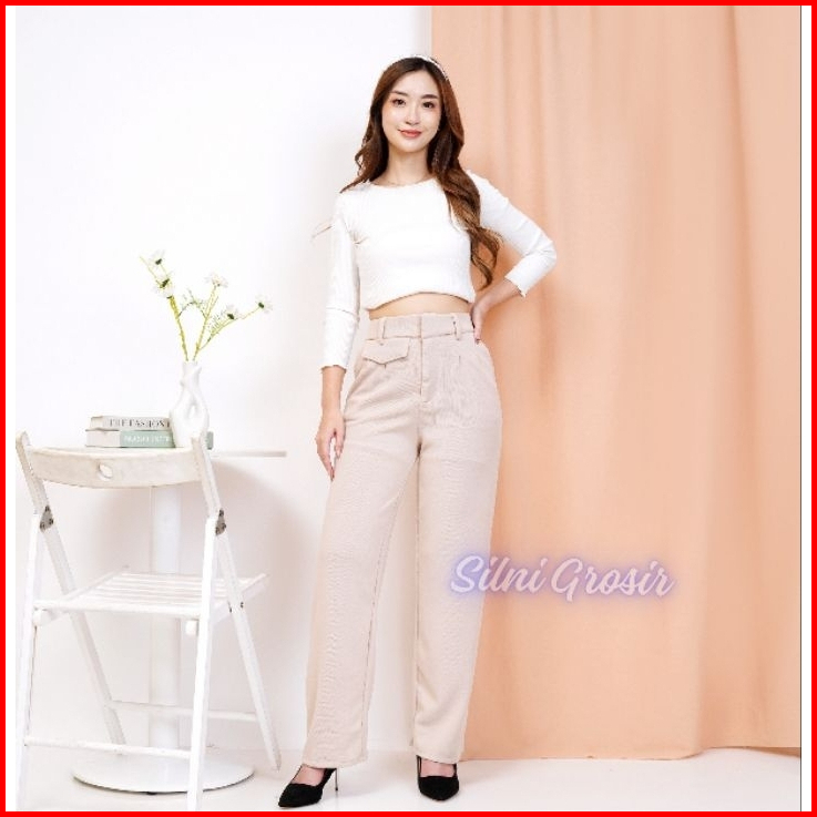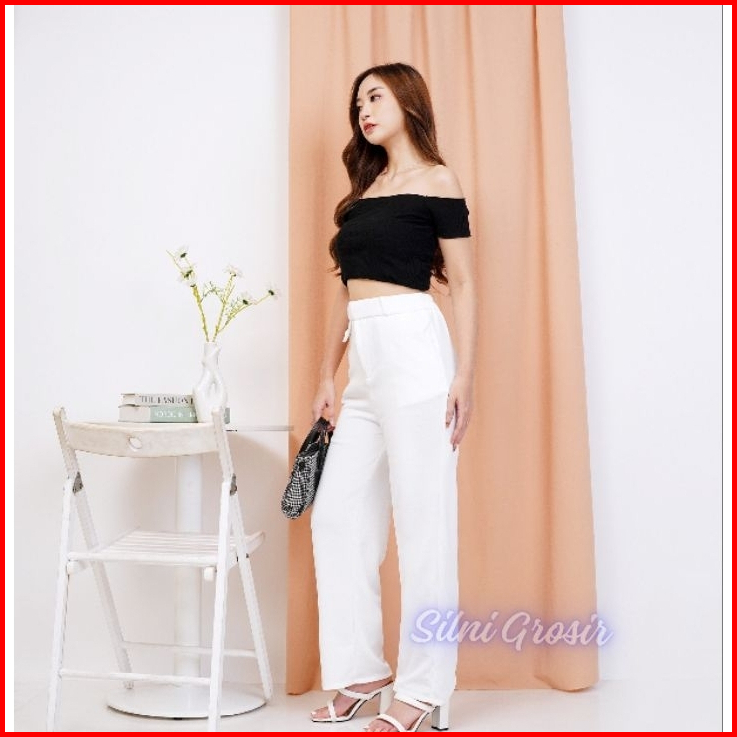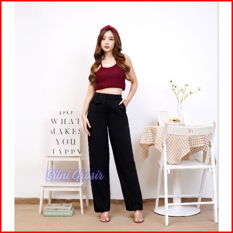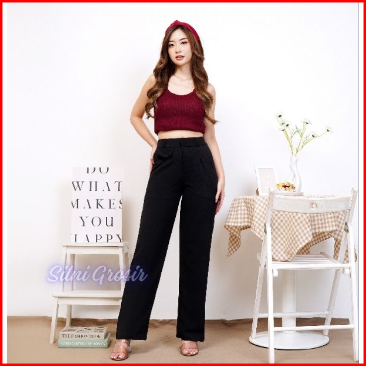 Oro Pants Celana Kulot Highwaist Loose Pants Trouser - Celana Kulot Wanita Anti Kusut Knit Premium
