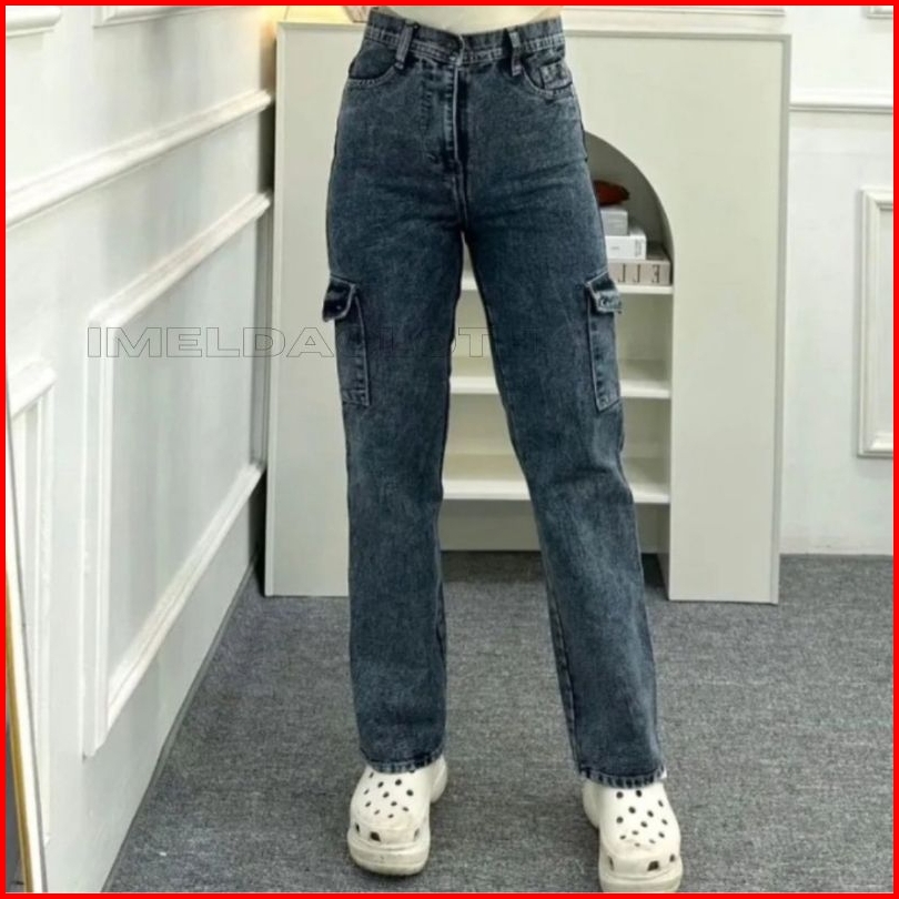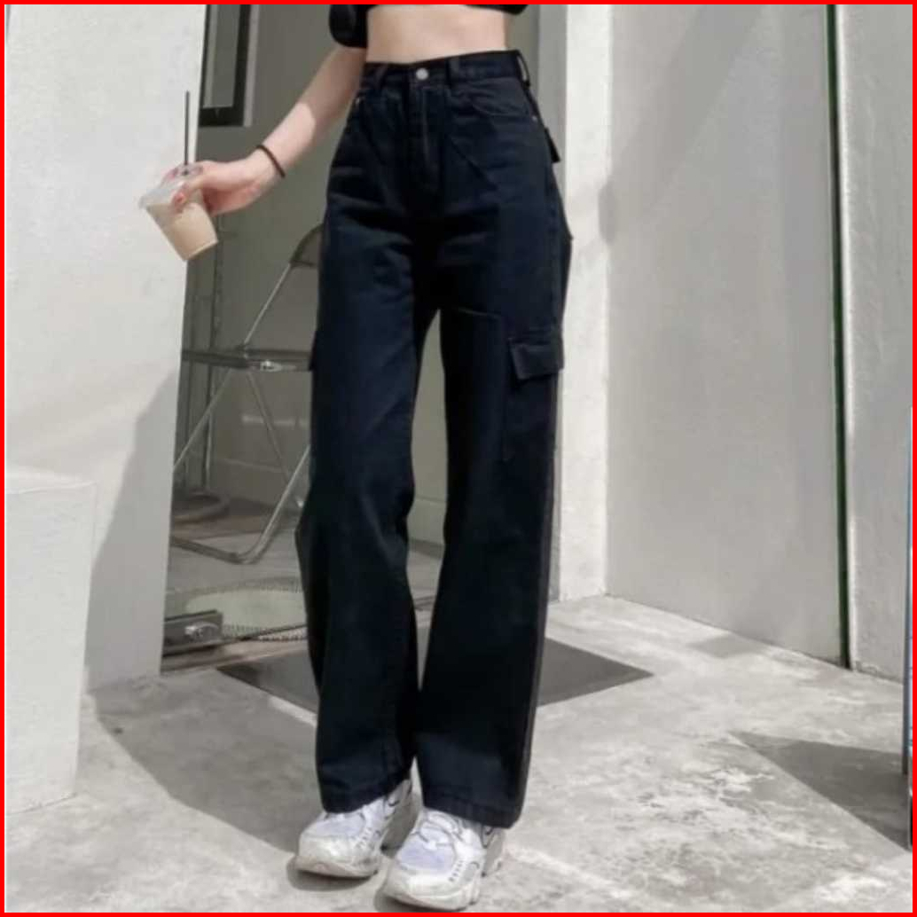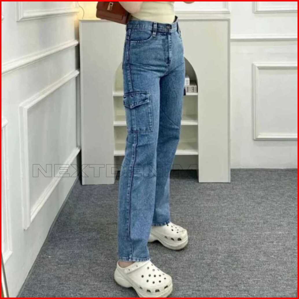 Nextdenim-celana Wanita Kulot Cargo Jeans Hightwaist
