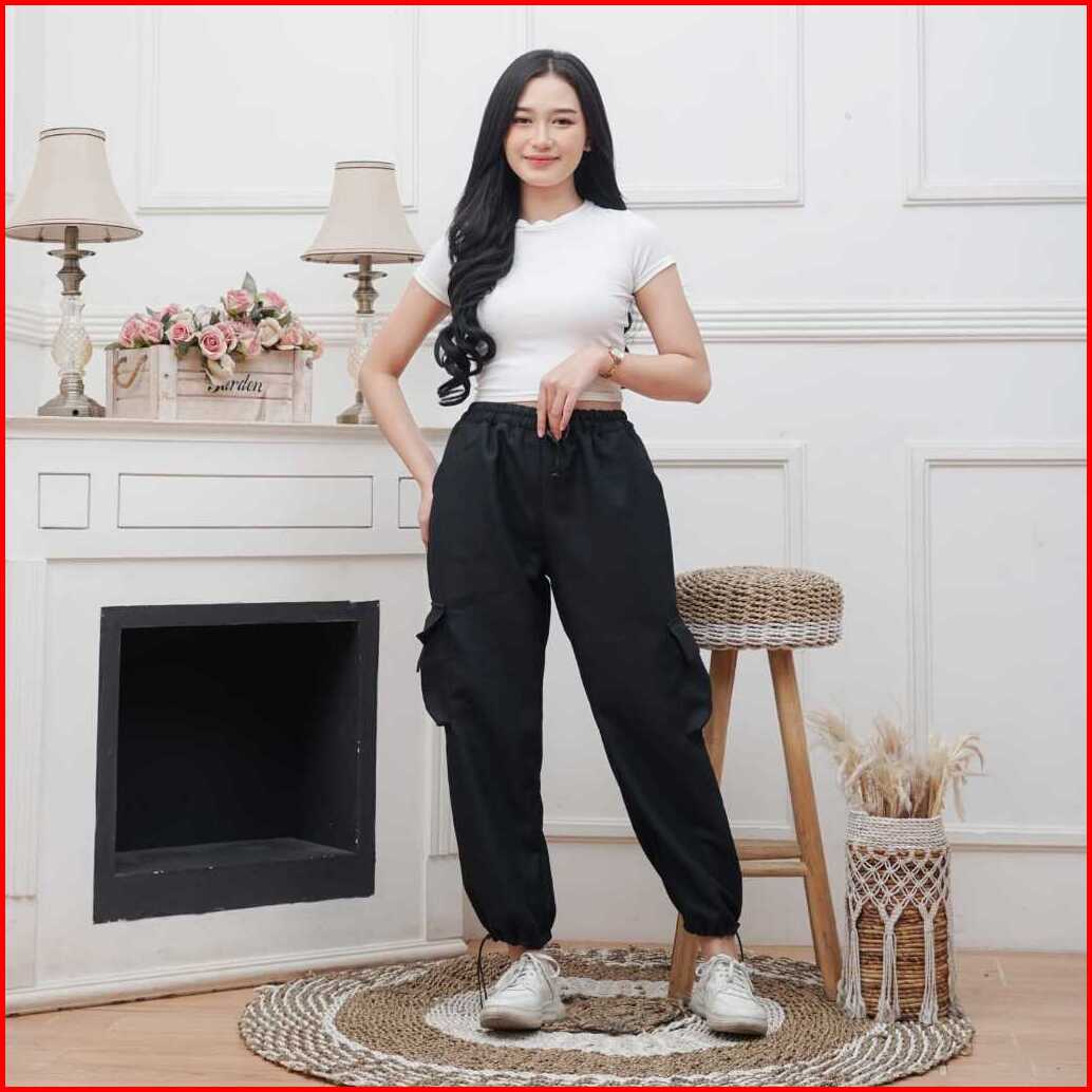 Celana Cargo Wanita Kekinian Bahan Premium Korean Stail Tali Serut Bb 40-80
