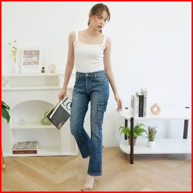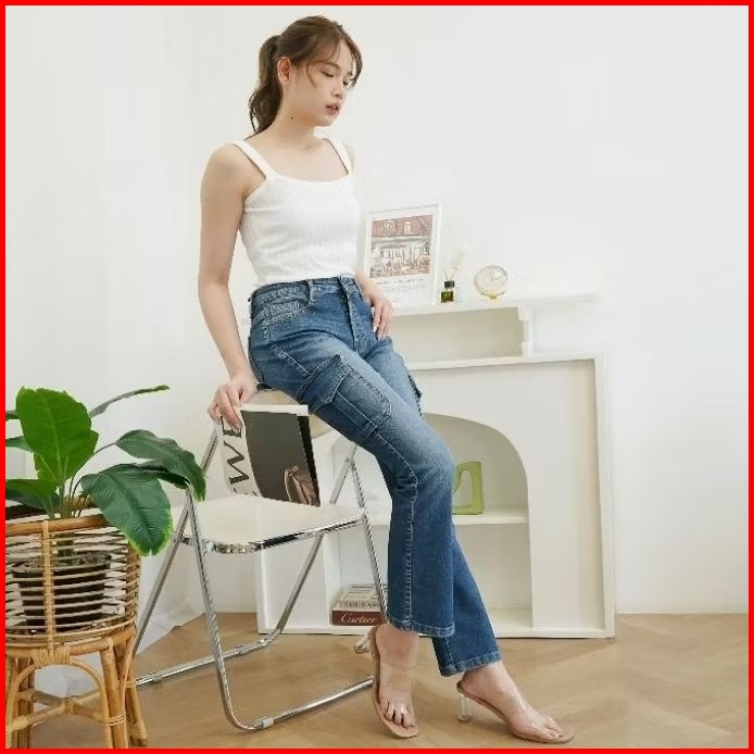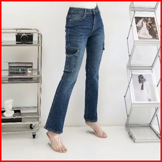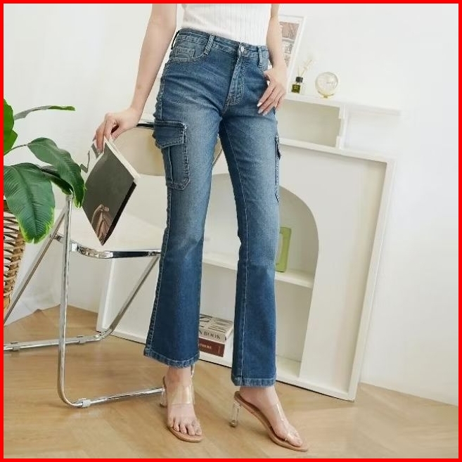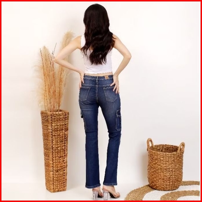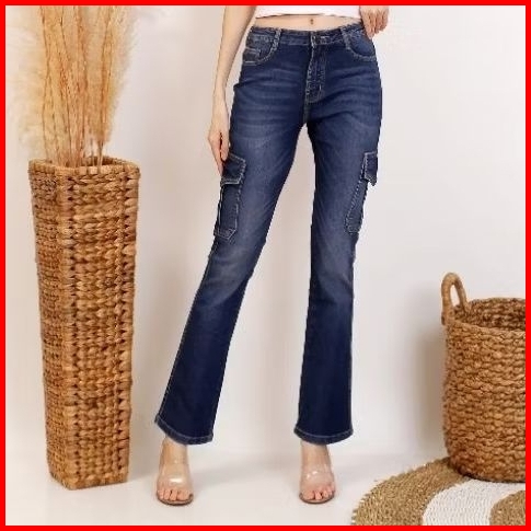 Trinitas Celana Cargo Fan Jeans Wanita Cutbray Bootcut Stretch Highwaist