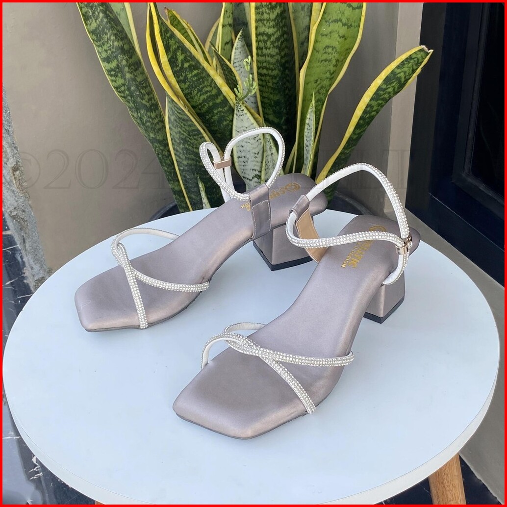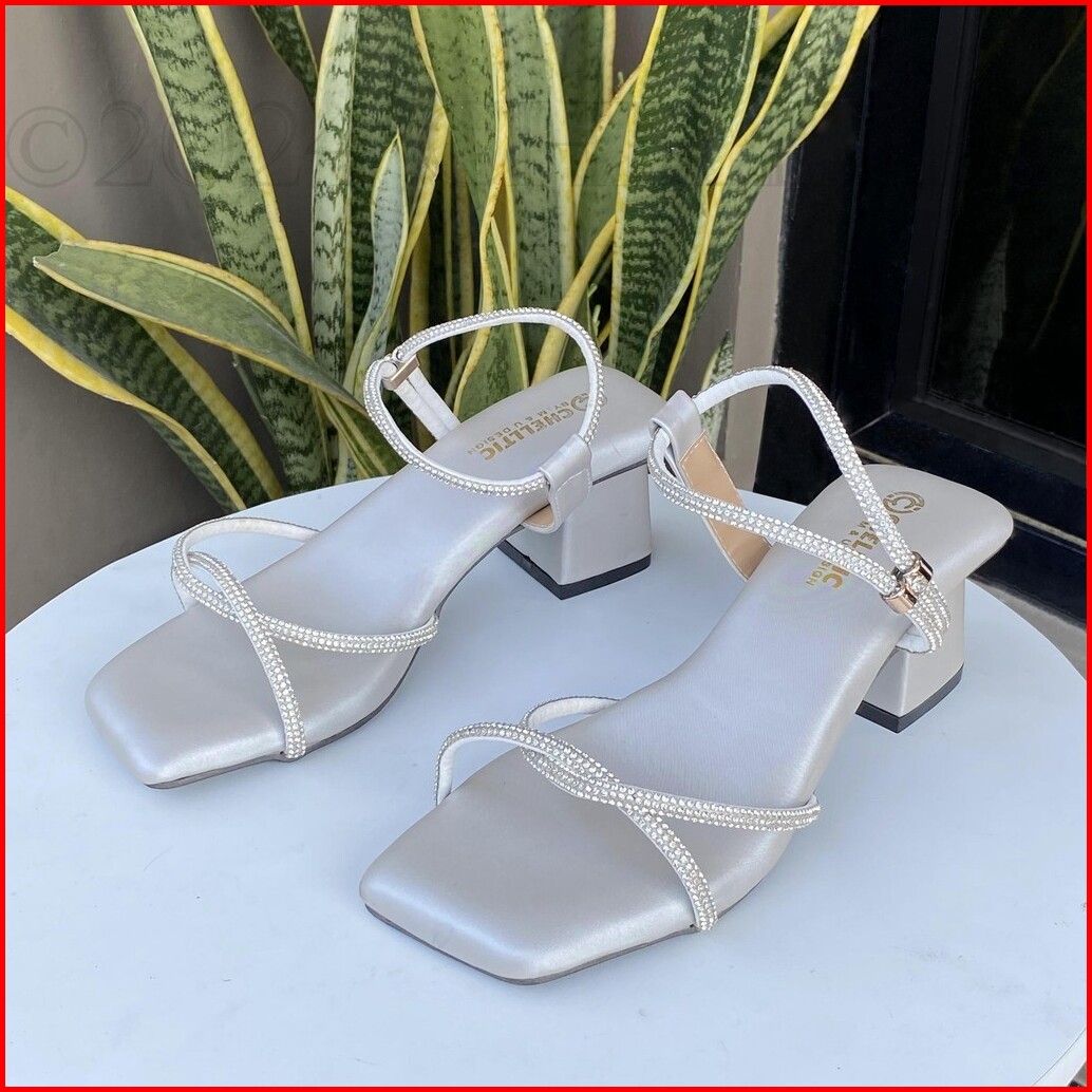 Chelltic - Sandal Wanita Heels Hak Tahu 5cm Tali Permata Terbaru Sepatu Hels Wanita Elegan Party Cewek Korea Sendal Selo