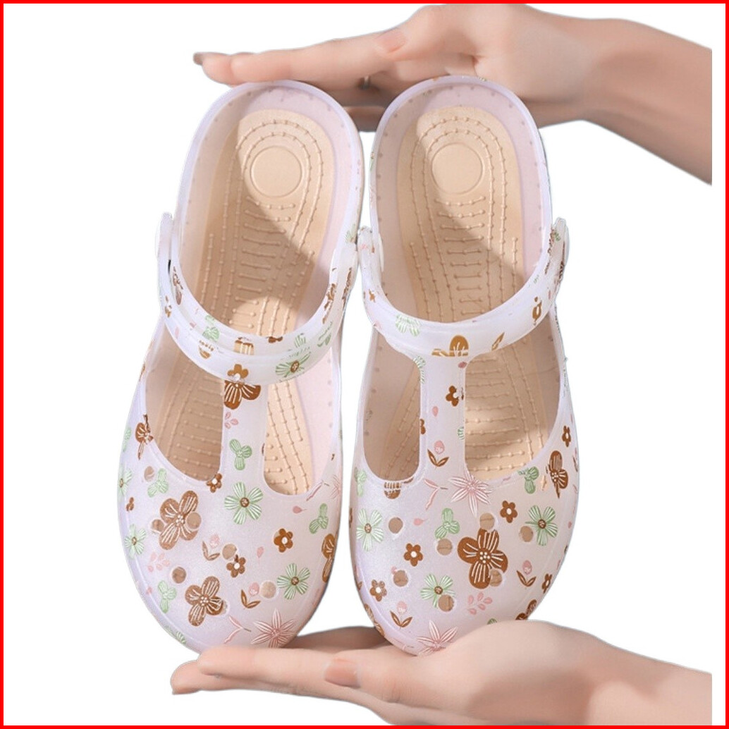 Okaido Sandal Sepatu Wanita Clog Mules Wanita Motif Bunga Dan Polos Bahan Jelly Bening Transparan Kekinian