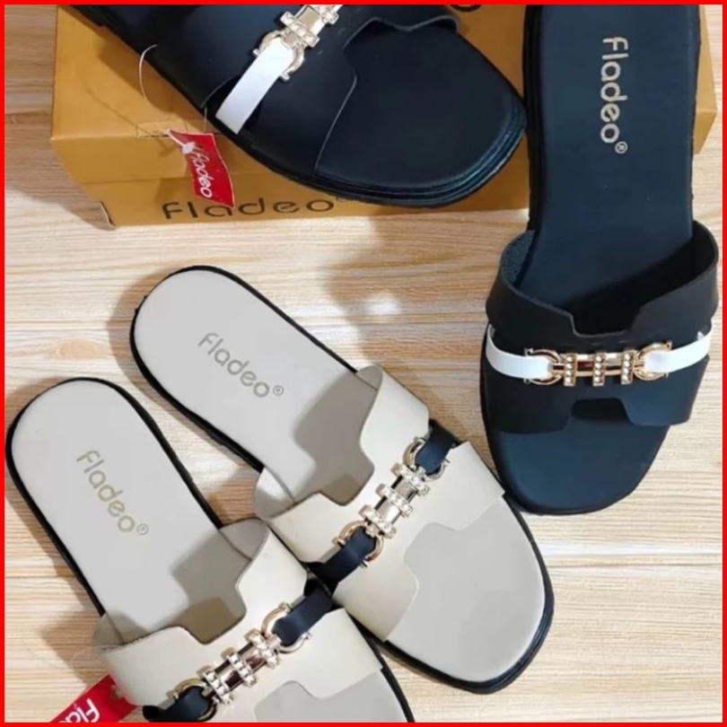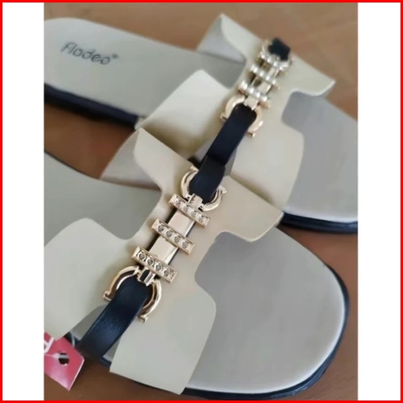 Sendal Slop Flat Gesper Wanita Trend Terbaru 36-40