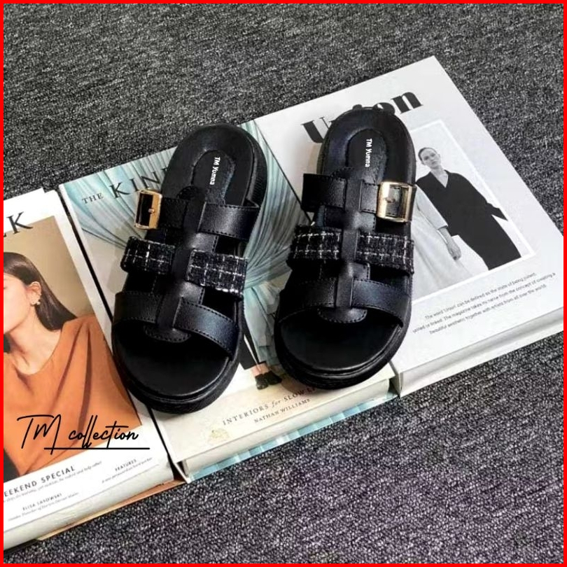 T M Tisya Rajut Sandal Wanita Formal Non Formal Casual Wedges Kekinian Tinggi 3cm Terbaru