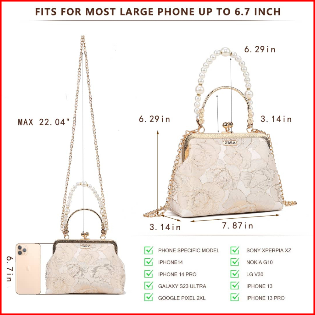 Zbra Tas Selempang Wanita Mini Mutiara Elegan Muat Hp 6.7 Inchi - Handbag Pesta A 8846
