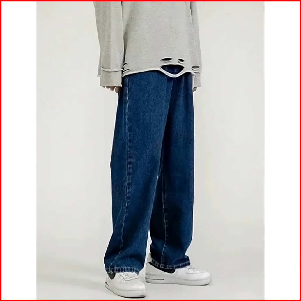 Enr - Celana Skena Jeans Pria Baggy Pants Korean Style Oversize Loose Blue Jeans Straight Denim