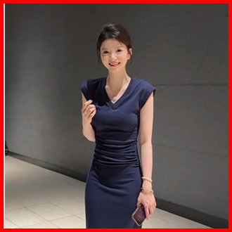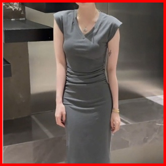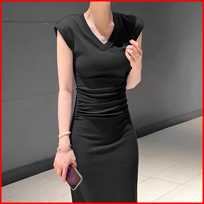 99koutlet Long Dress Dress Panjang Kekinian Bodycon Maxi Dress V Neck Short Sleeve S M L Xl 3280 Lengan Pendek Polos Gam