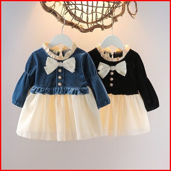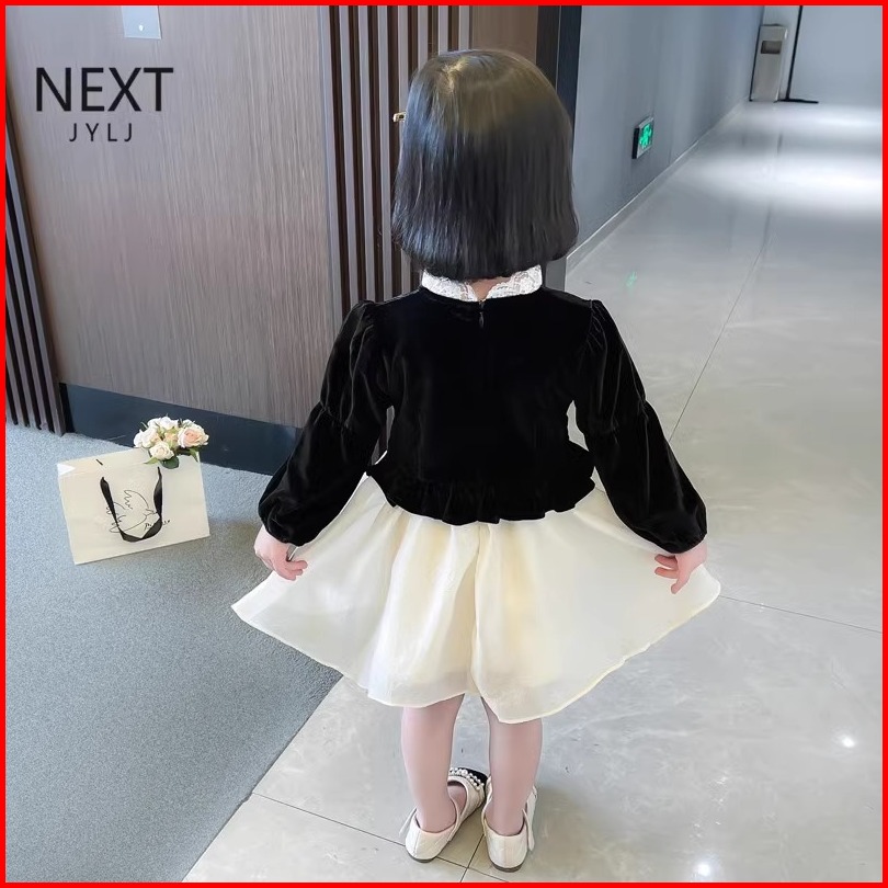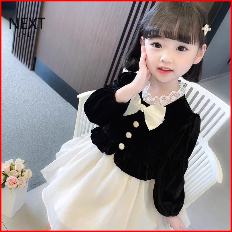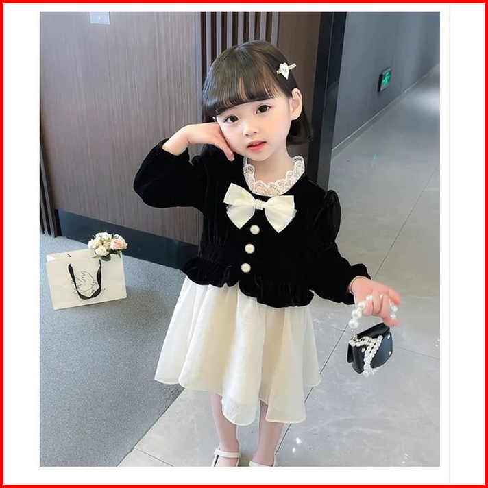 Rainbow Baju Dress Anak Perempuan 1-4tahun Gaun Beludru Impor Gaun Putri Lengan Panjang Korea Style