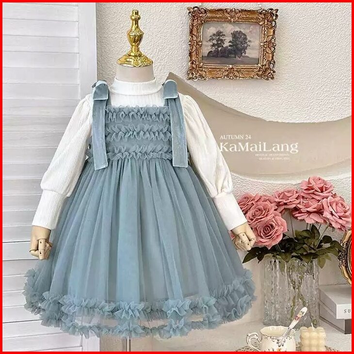 Joyfultots Gaun Anak Perempuan Gaun Putri Busur Baru Gaya Korea Gaun Pesta Ulang Tahun Gadis Kecil