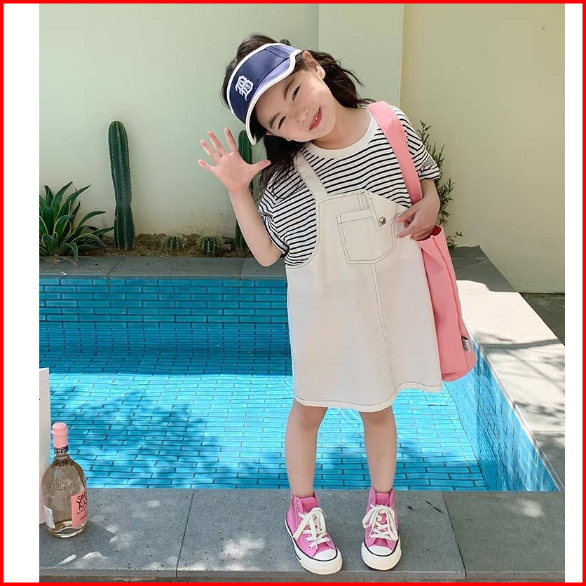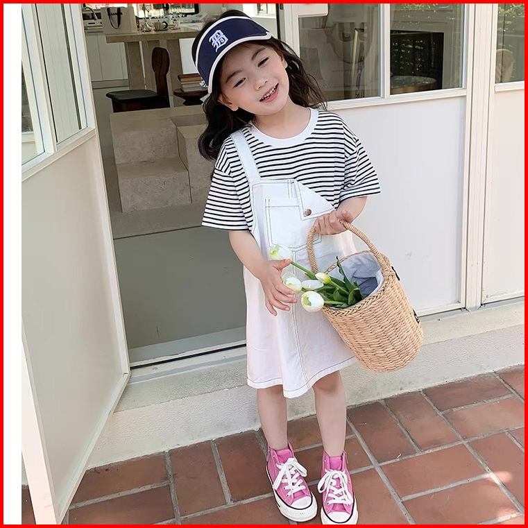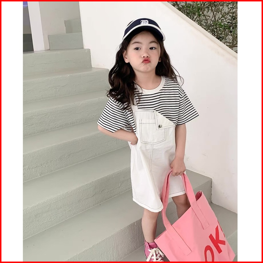 Dress Anak Cewe Gaun Garis Overalls Harian Anak Perempuan Dress Anak Impor Perempuan Gaun Harian Anak Terbaru Baju Anak