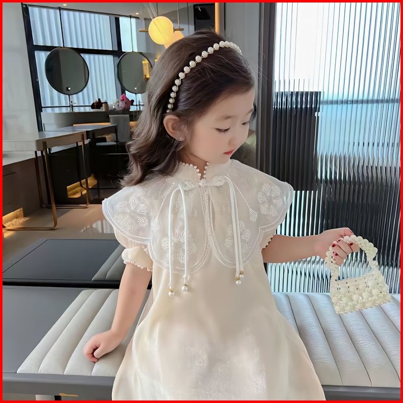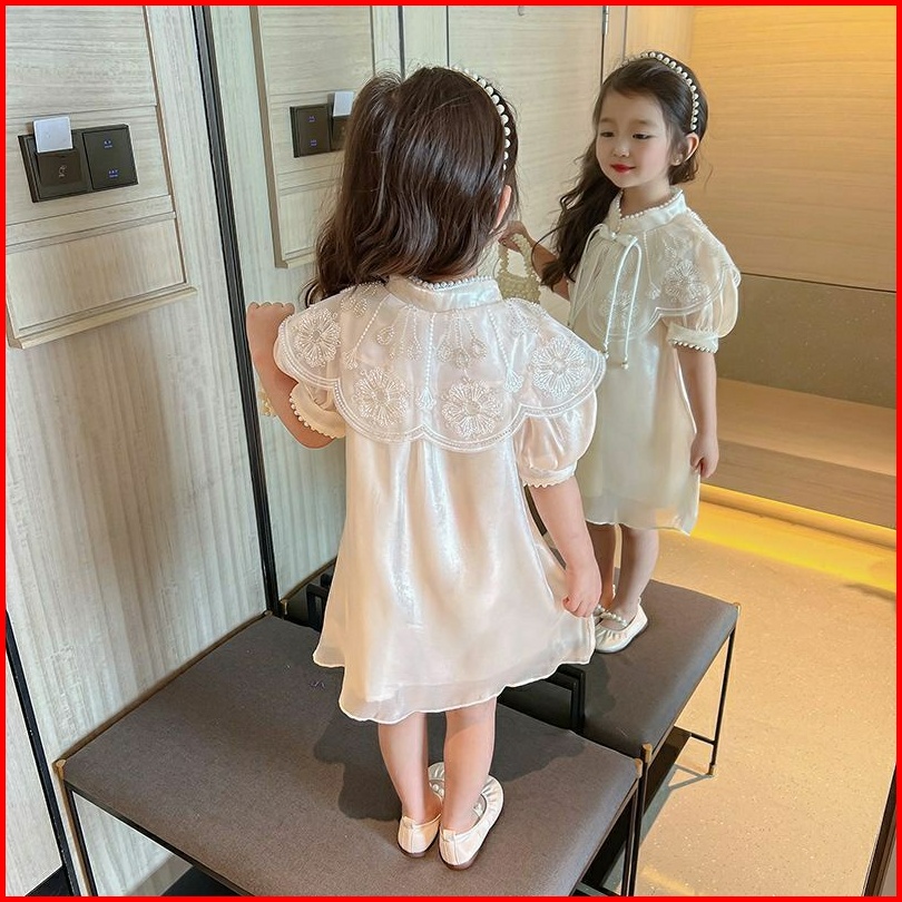 Readygaun Anak Perempuan Gaya Etnik Gaun Gaya Barat 2025 Musim Panas Selebriti Baru Puff Sleeve Mesh Gaun Putri Dress Ru