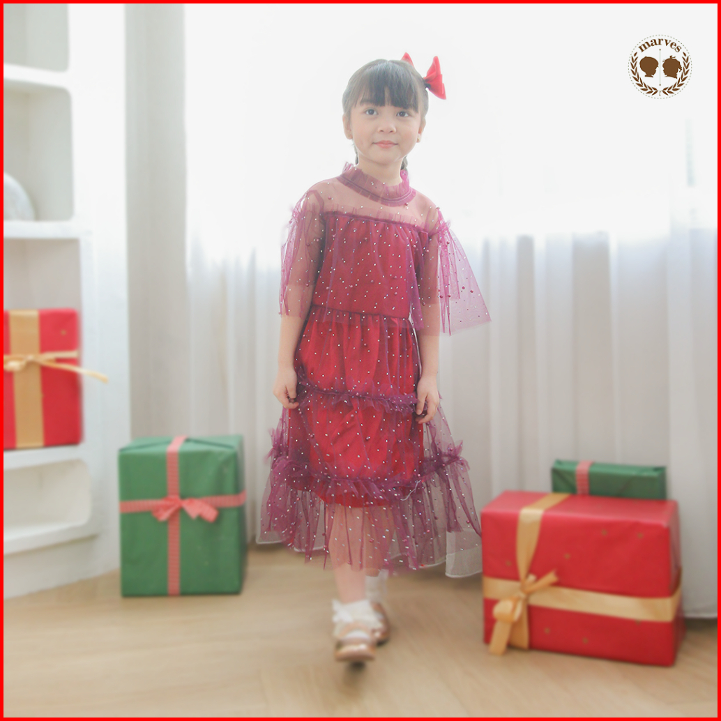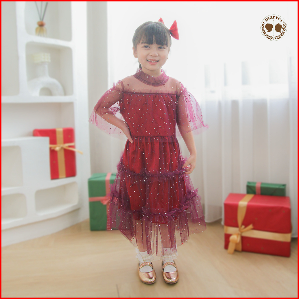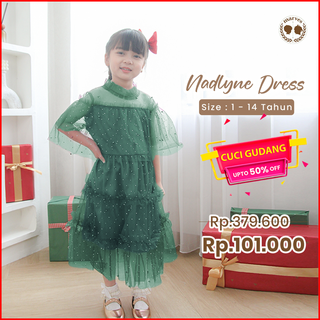 Cuci Gudang Marves Natal Collection Nadlyne Dress Baju Anak Perempuan Usia 1 Hingga 14 Tahun