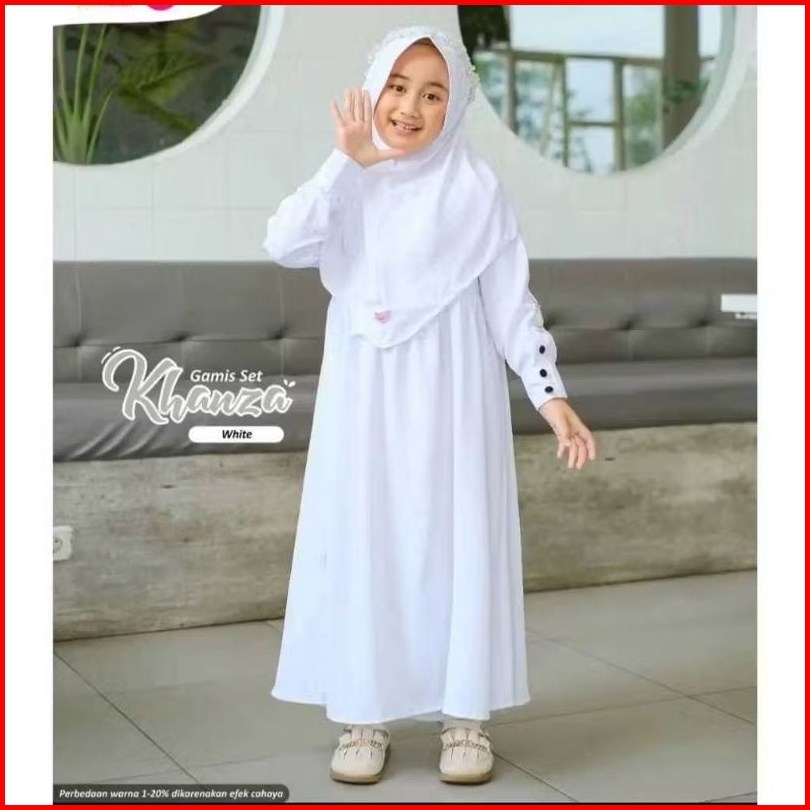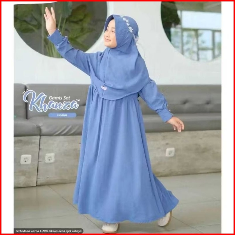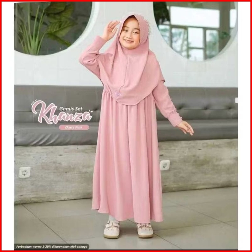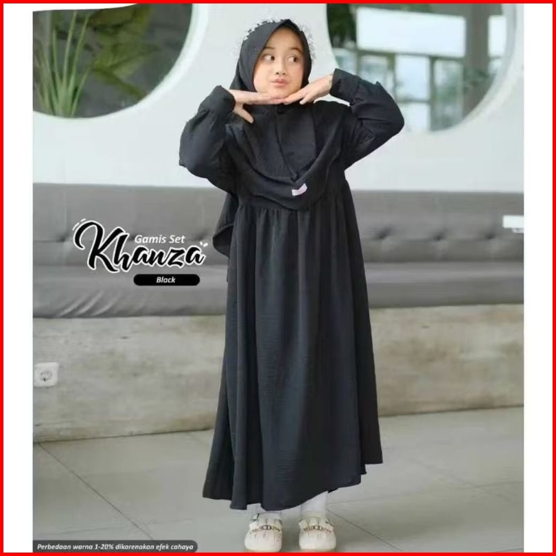 Khanza Set Hijab Gamis Muslim Anak Perempuan Terbaru Usia 3-12 Tahun Dress Anak Crinkle Airflow Baju Lebaran 2025