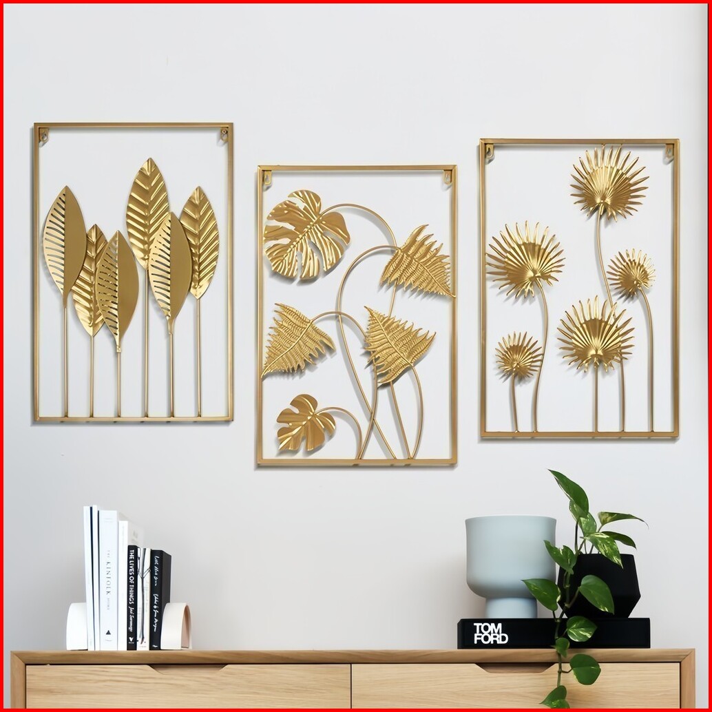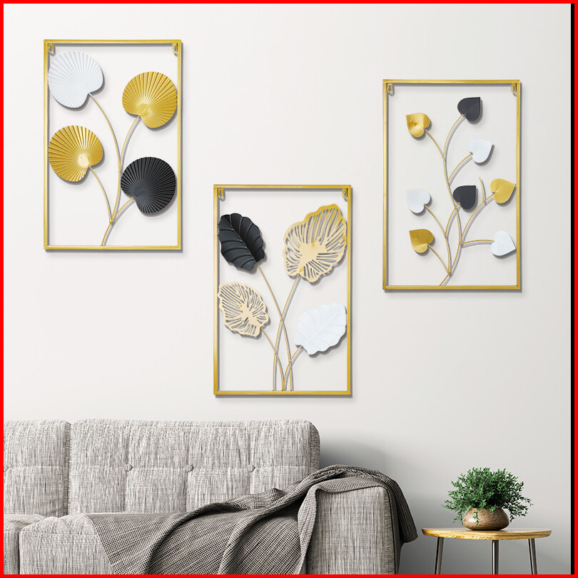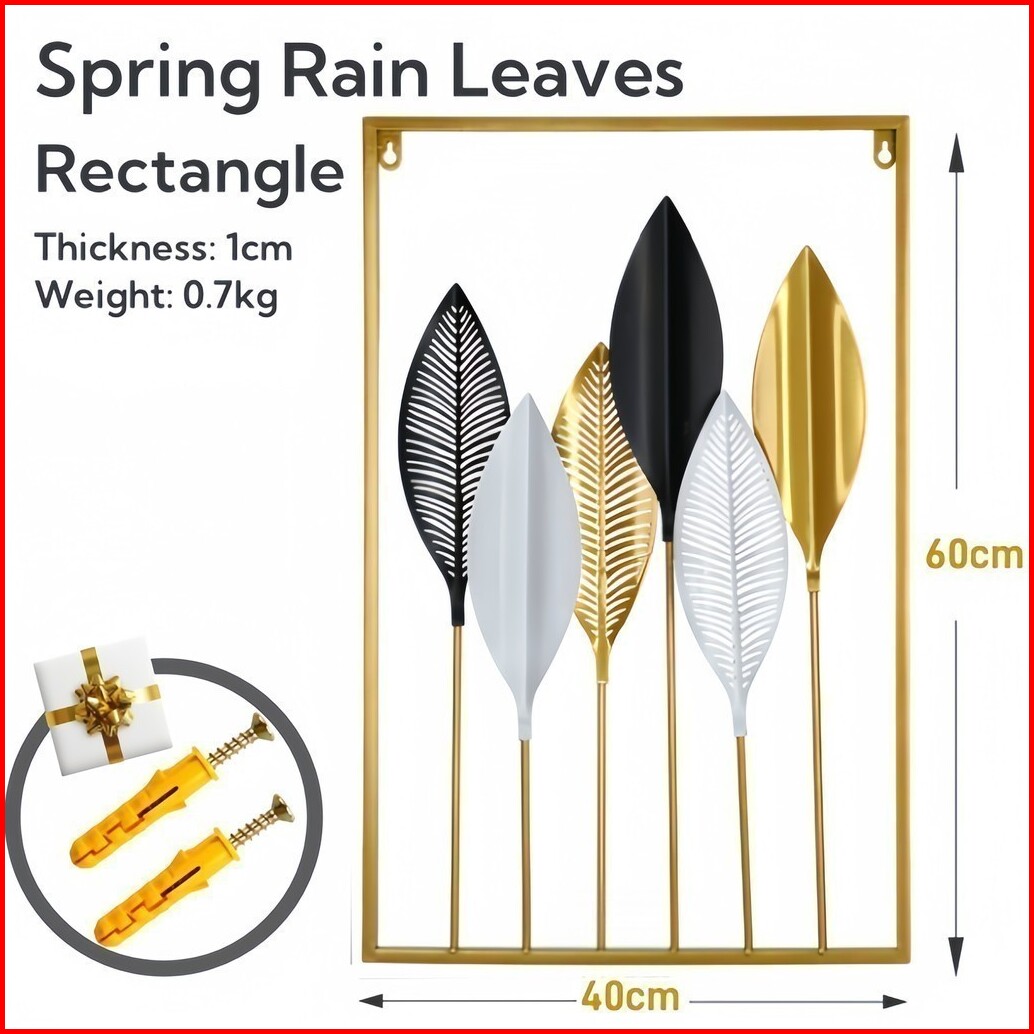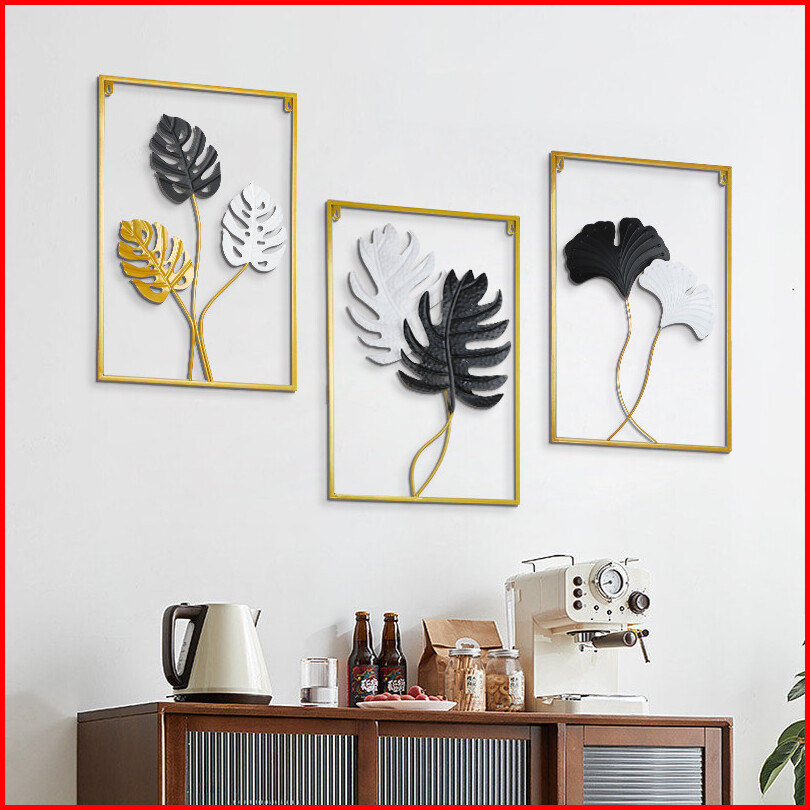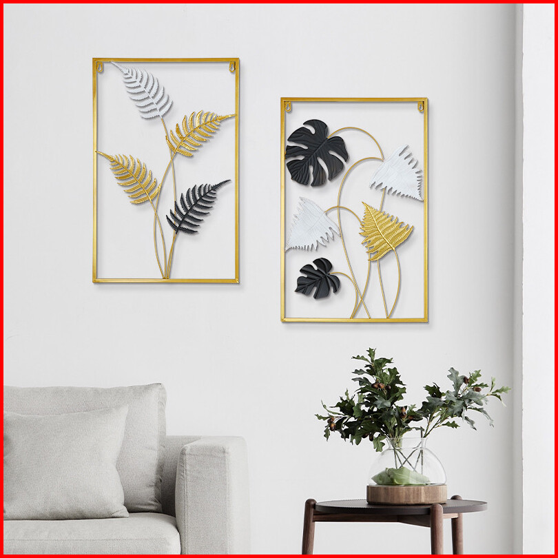 Framed Metal Wall Decor 60 40cm With Square Frame Leaves Art Christmas Decor Artwork Nordic Style