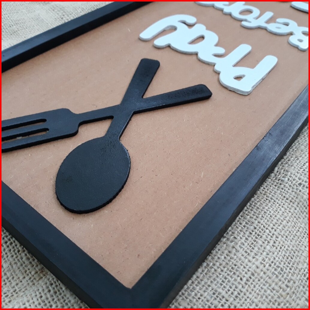 Hiasan Dinding Pray Before Eat - Hiasan Dinding Frame Tulisan Timbul