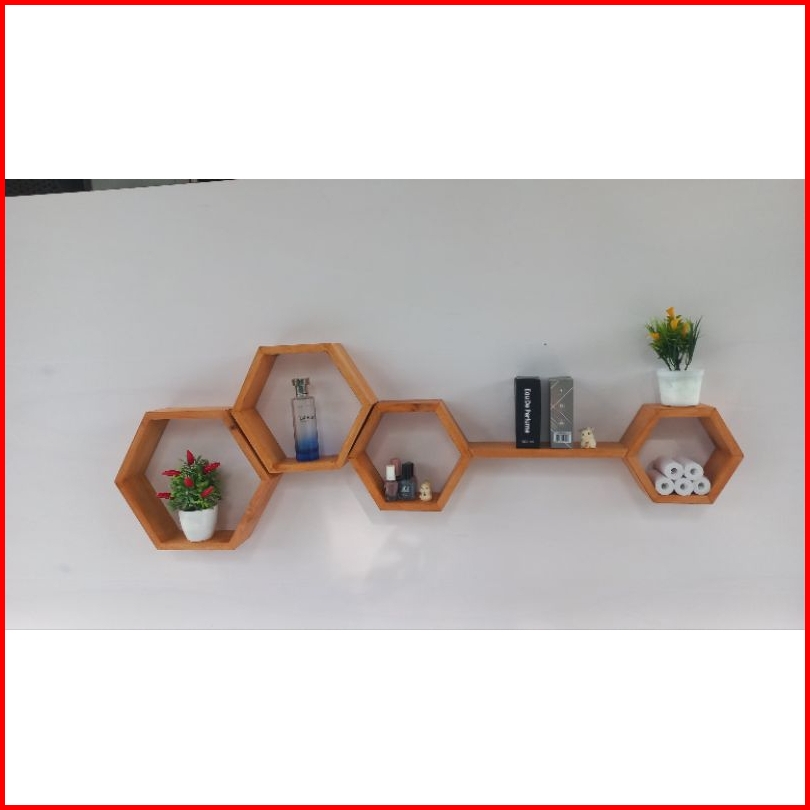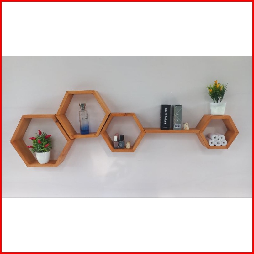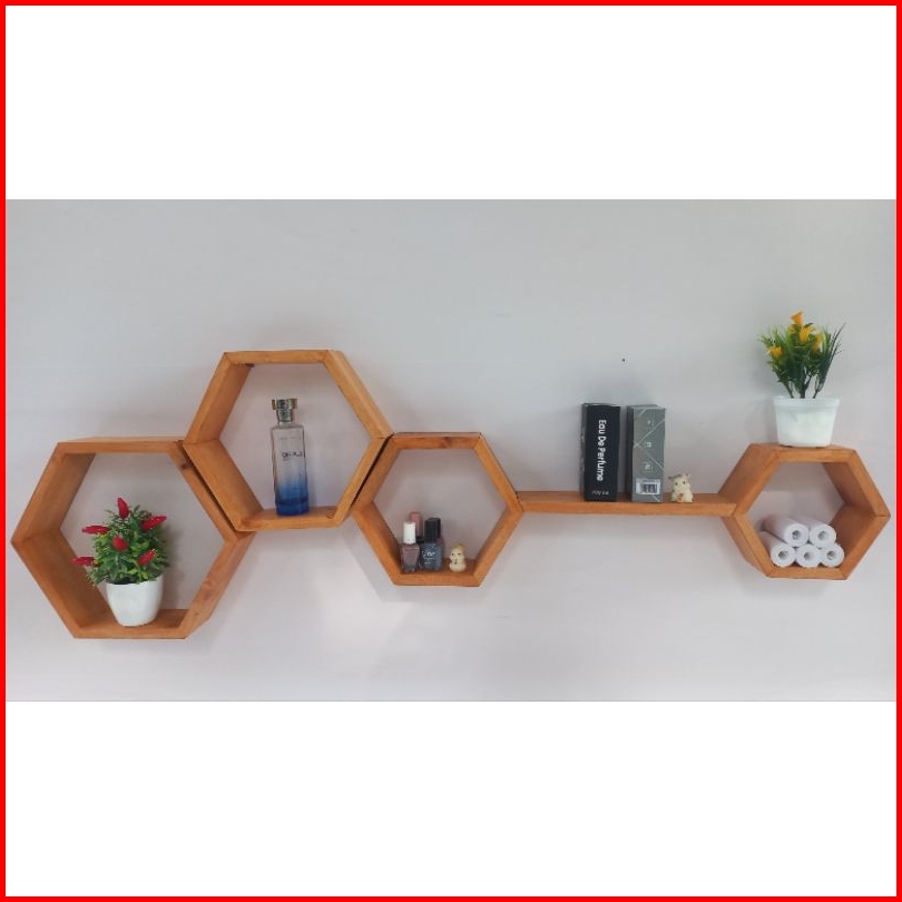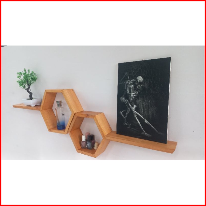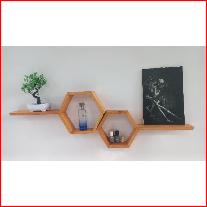 Rak Dinding Kayu Aesthetic Hexagonal Pajangan Dinding Minimalis Dekorasi Dinding Kayu