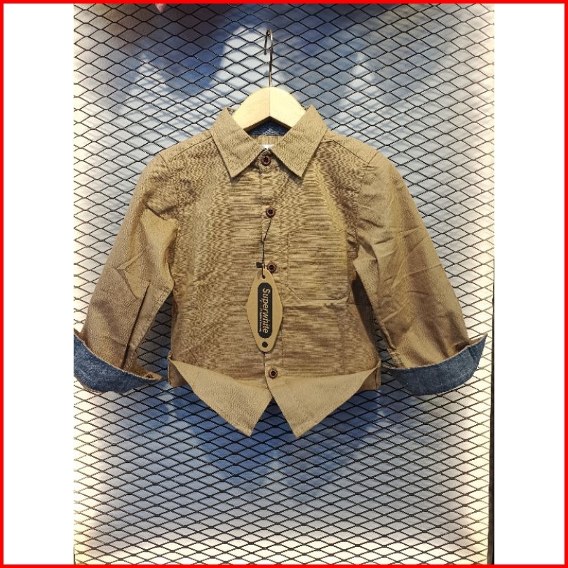 Kemeja Anak Laki Lengan Panjang Warna Mocha Terbaru 1-14 Tahun