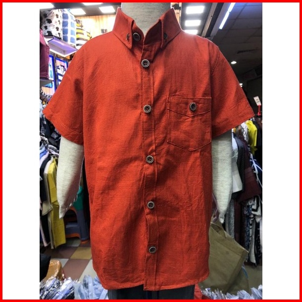 Kemeja Anak Laki-laki Lengan Pendek Warna Teracotta Bahan Katun Uniqlo Premium Estimasi Usia 1-16 Tahun
