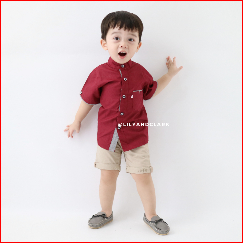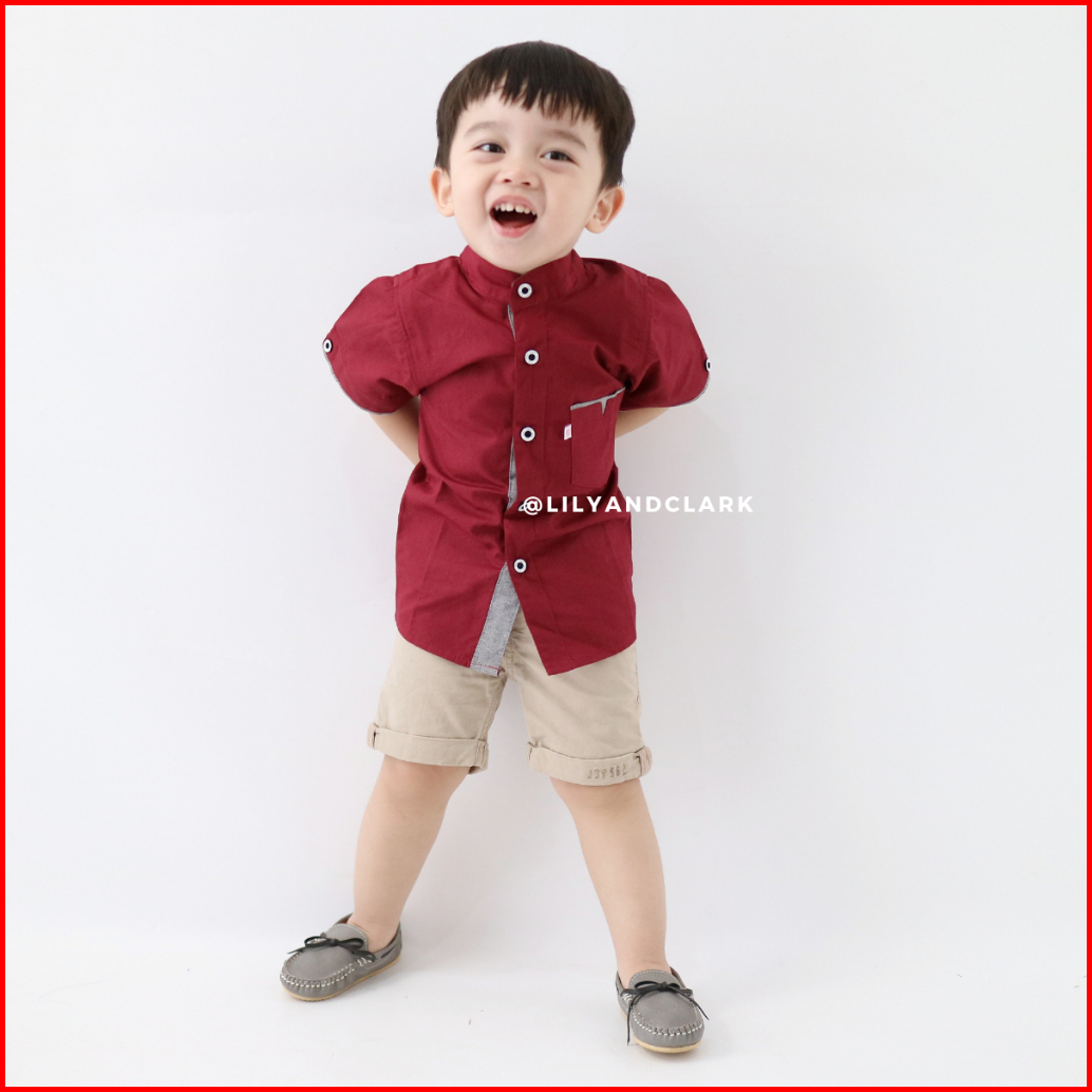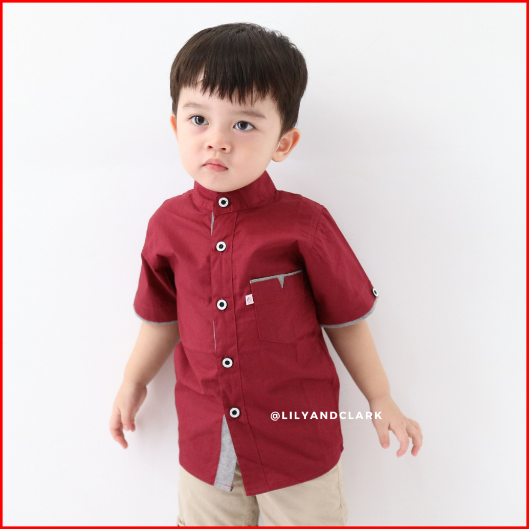Lily And Clark Kemeja Anak Laki Laki Lengan Pendek Warna Merah Maroon Kp05 Trendy