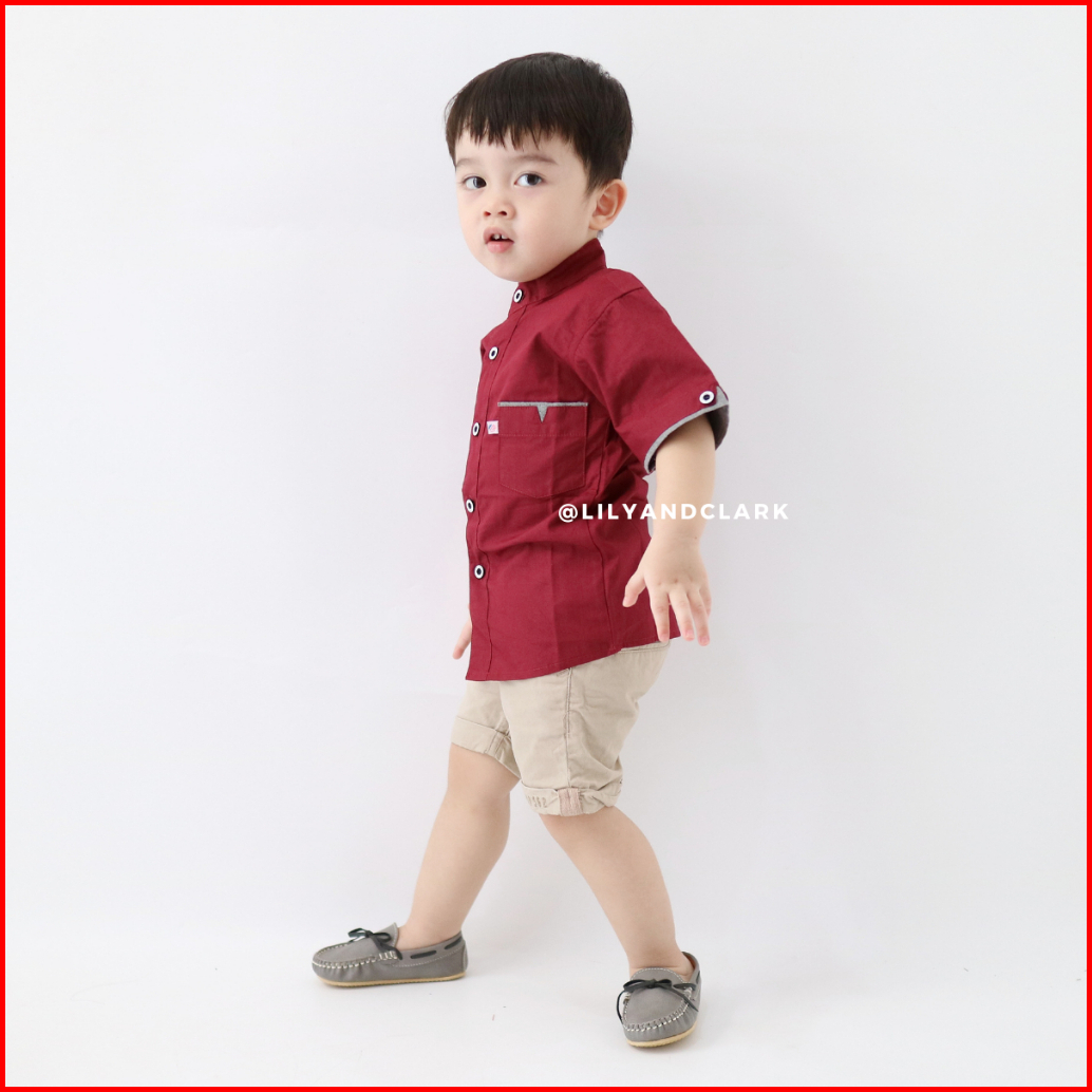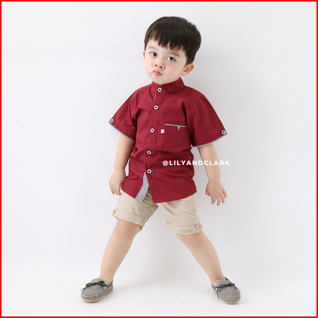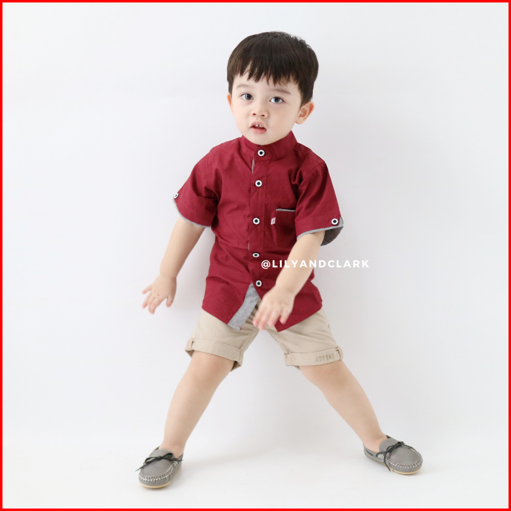 Lily And Clark Kemeja Anak Laki Laki Lengan Pendek Warna Merah Maroon Kp05 Trendy