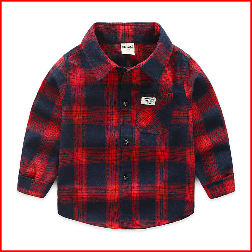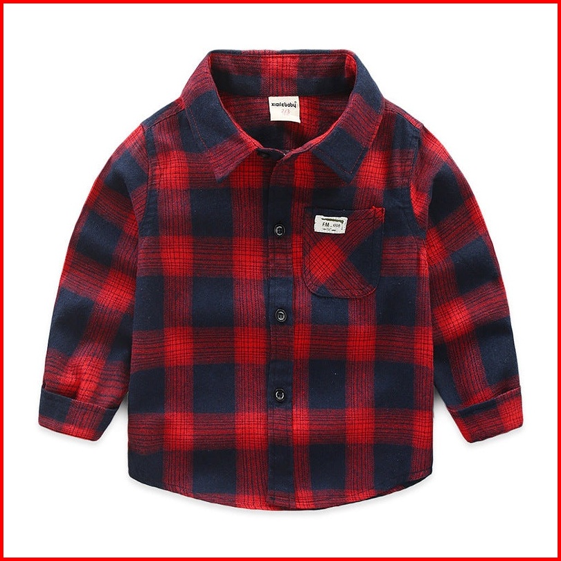 119107-red - Atasan Kemeja Anak Korean Style - Motif Boxes Colors