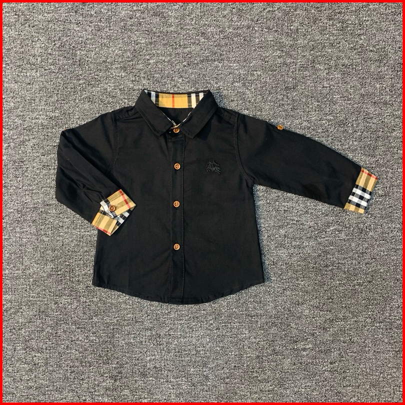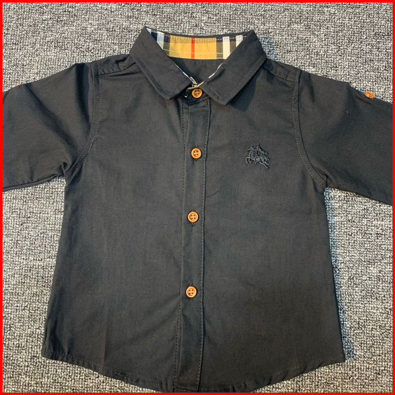 Atasan Kemeja Anak Laki Laki Cowok Warna Coklat Dan Hitam Untuk Umur 3 6 Bulan.