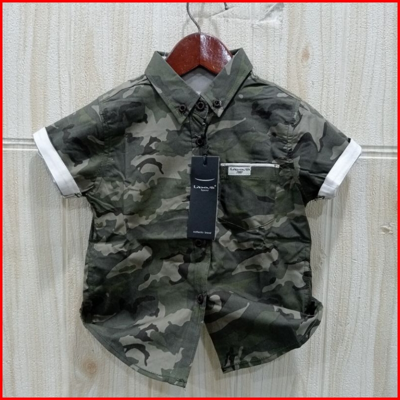 Kemeja Anak Lengan Pendek 1-13 Tahun Motif Loreng Ijo Army Bahan Katun Lembut Premium By Libas