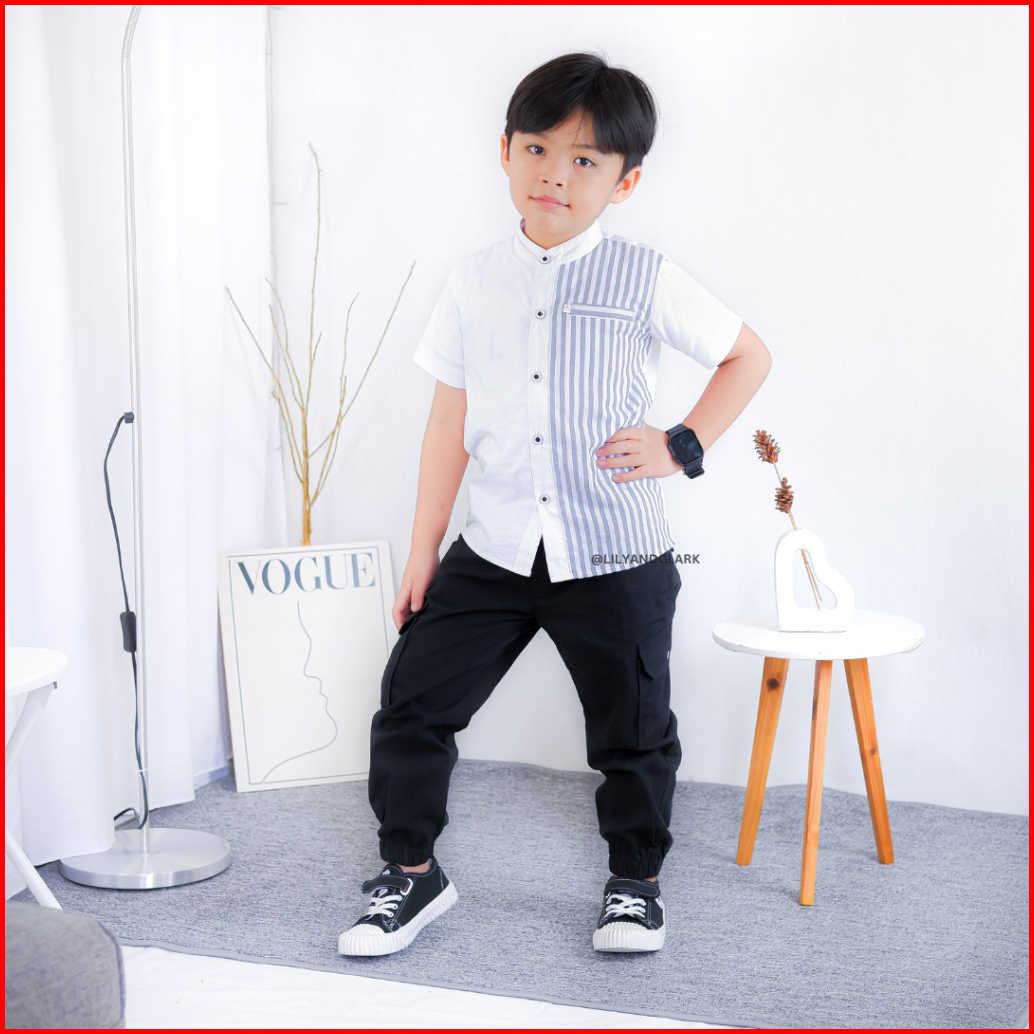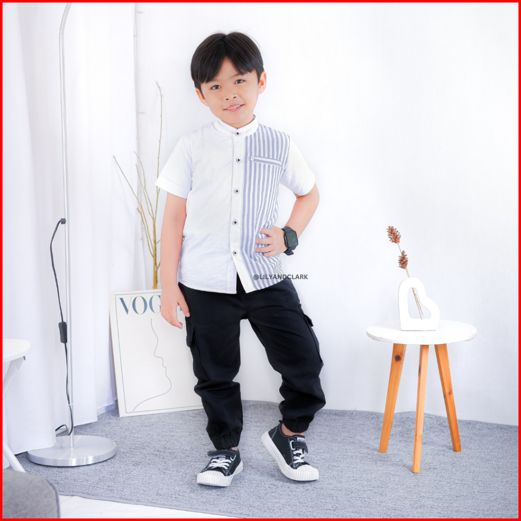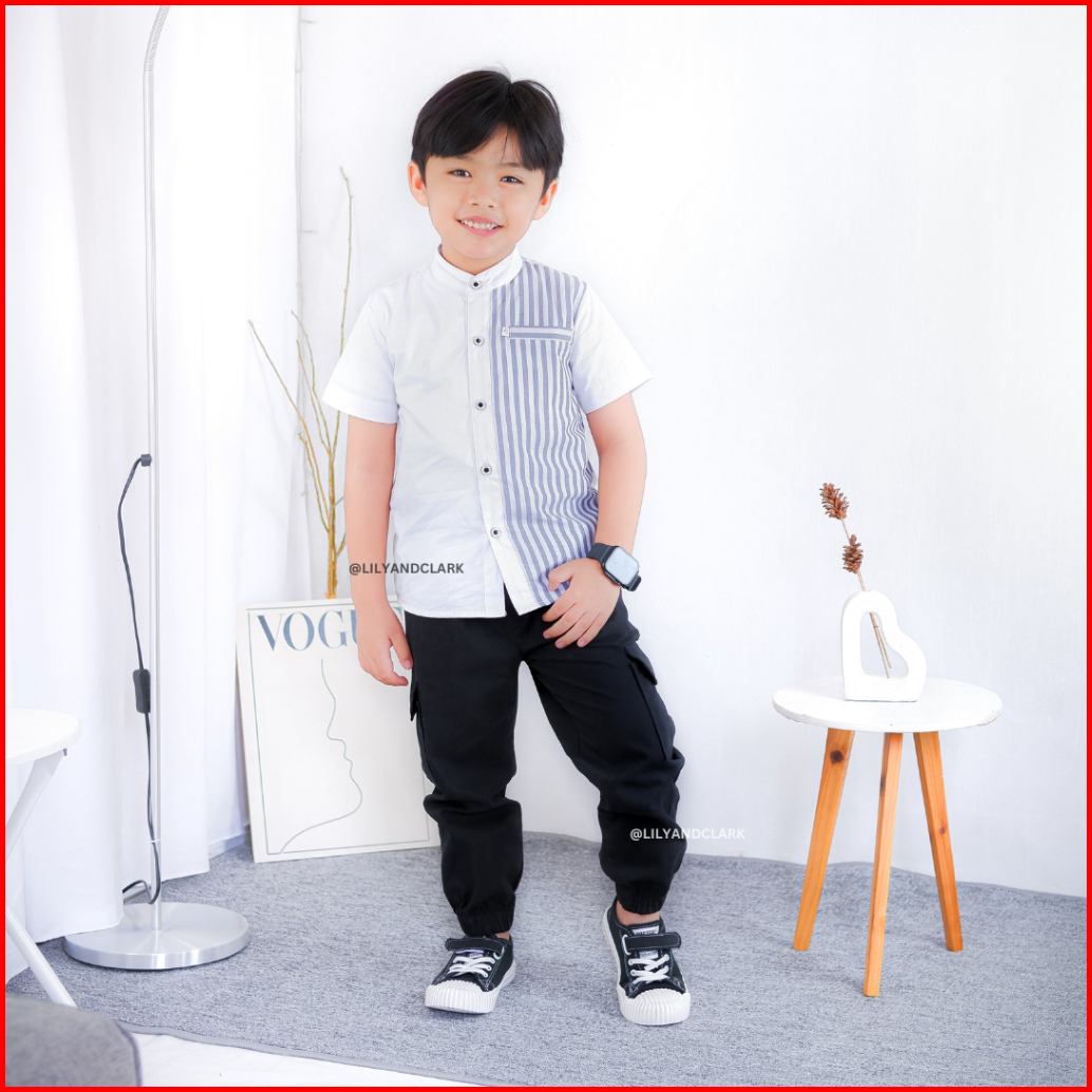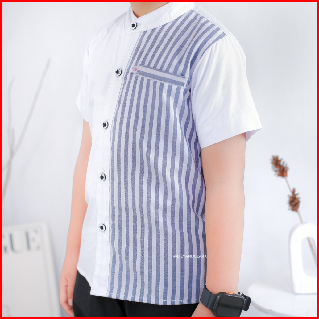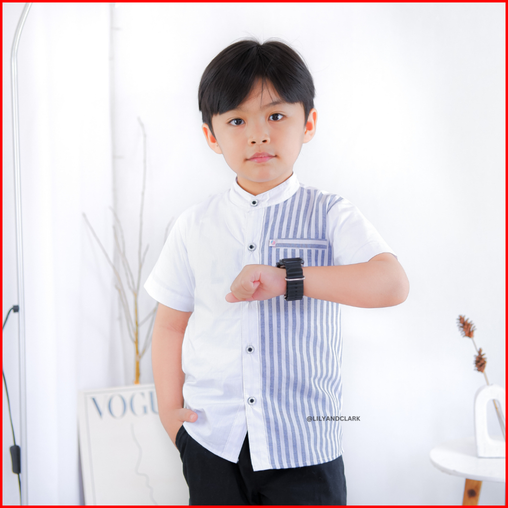 Lily And Clark Kemeja Pendek Anak Warna Putih Salur Abu Kp14