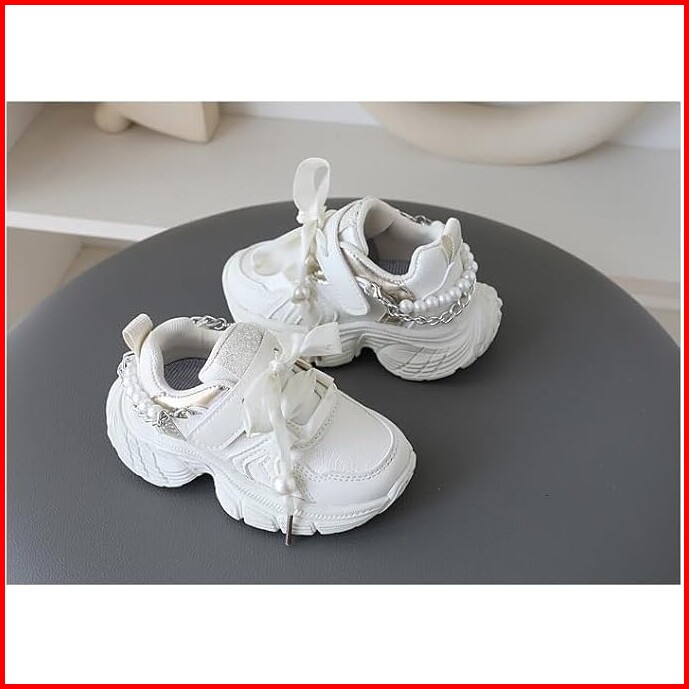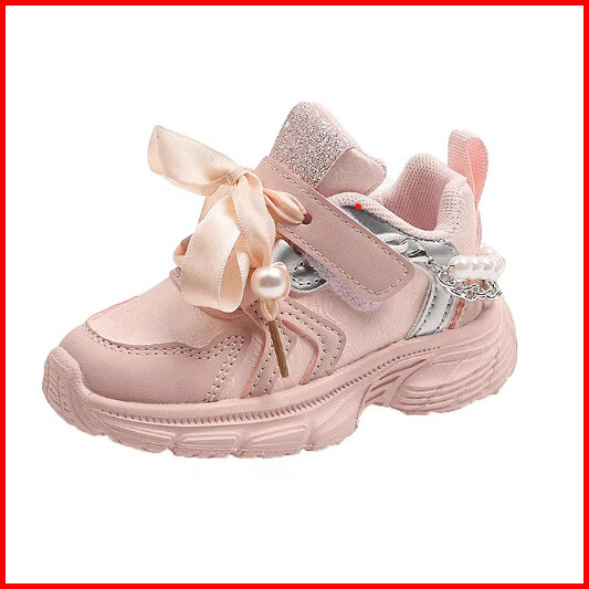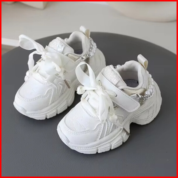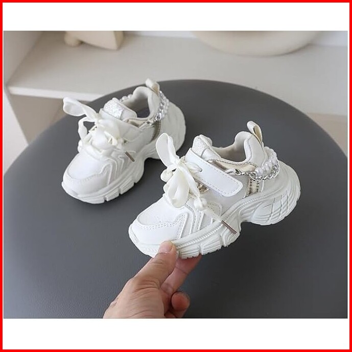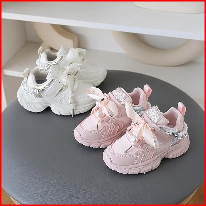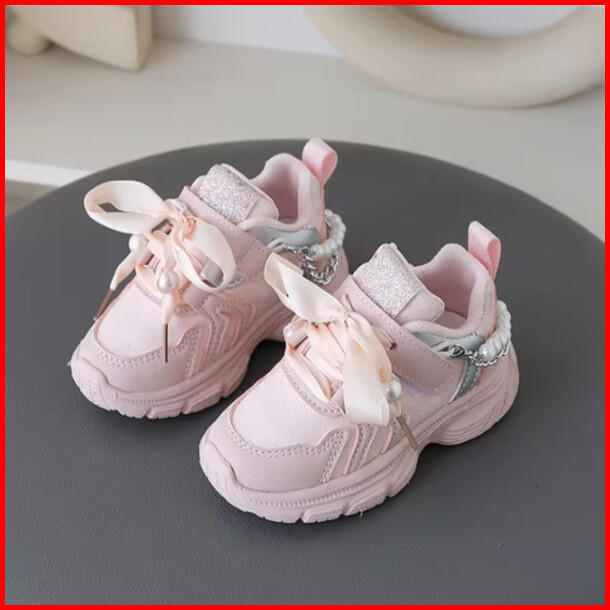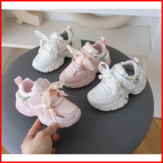 Sepatu Sneakers Fashion Olahraga Glitter Mutiara Putih Pink Anak Perempuan Sneaker Kulit Casual Anak Cewek