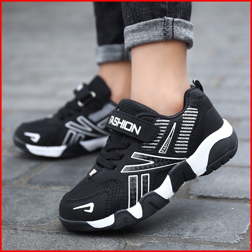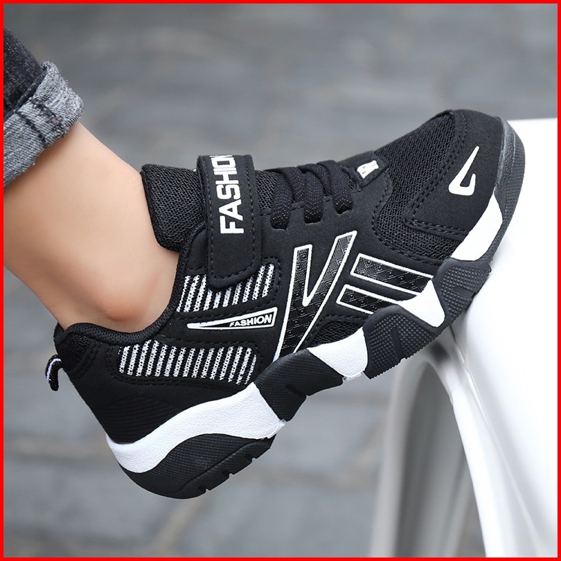 Sepatu Anak Cowok Hitam Sepatu Sneakers Anak Laki Laki Sd Sepatu Olahraga Anak Tk Sd Sepatu Sekolah Perempuan Velcro Unt