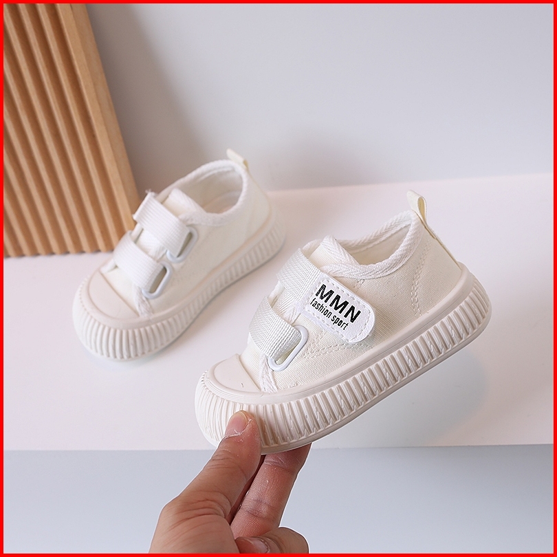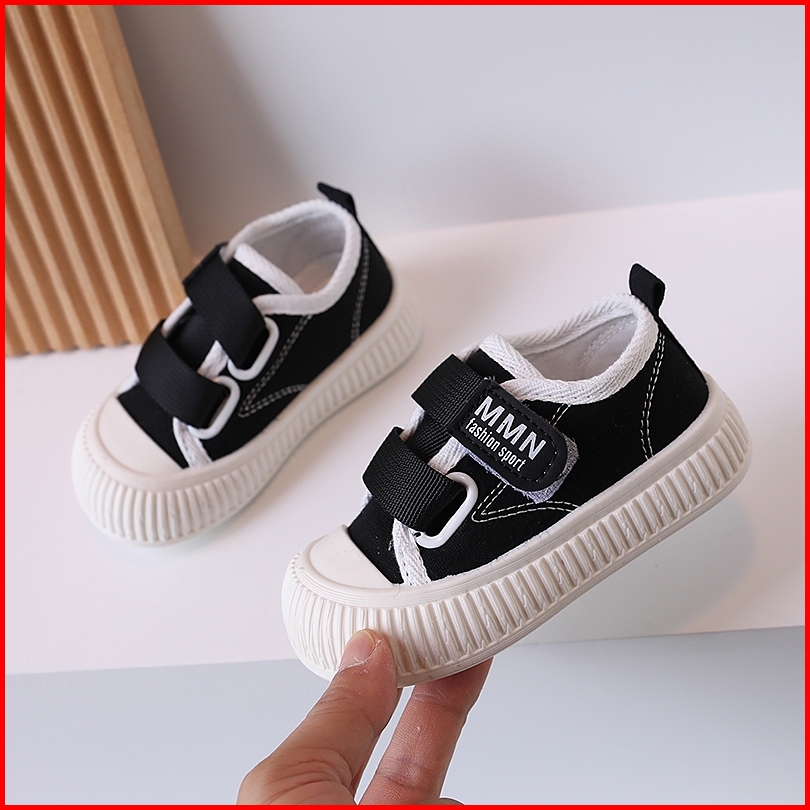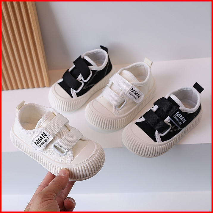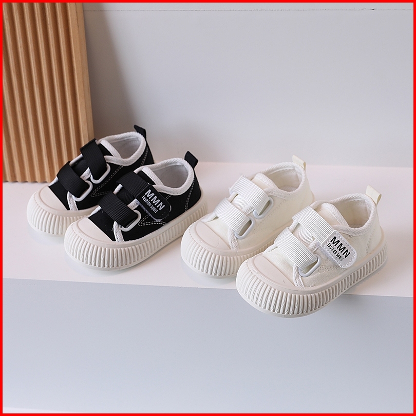 Sepatu Anak Usia 1-3 Tahun Hitam Putih Sepatu Flat Super Lembut Bahan Kanvas Kualitas Baik Free Box