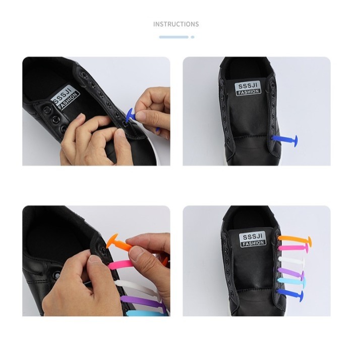 LL10 TALI SEPATU SILIKON KARET ISI 16 SHOELACE SILICONE LAZY LACE - BLACK