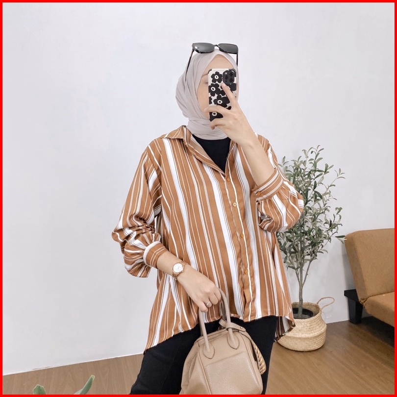 Kima Kemeja Wanita Stripe Atasan Garis-garis