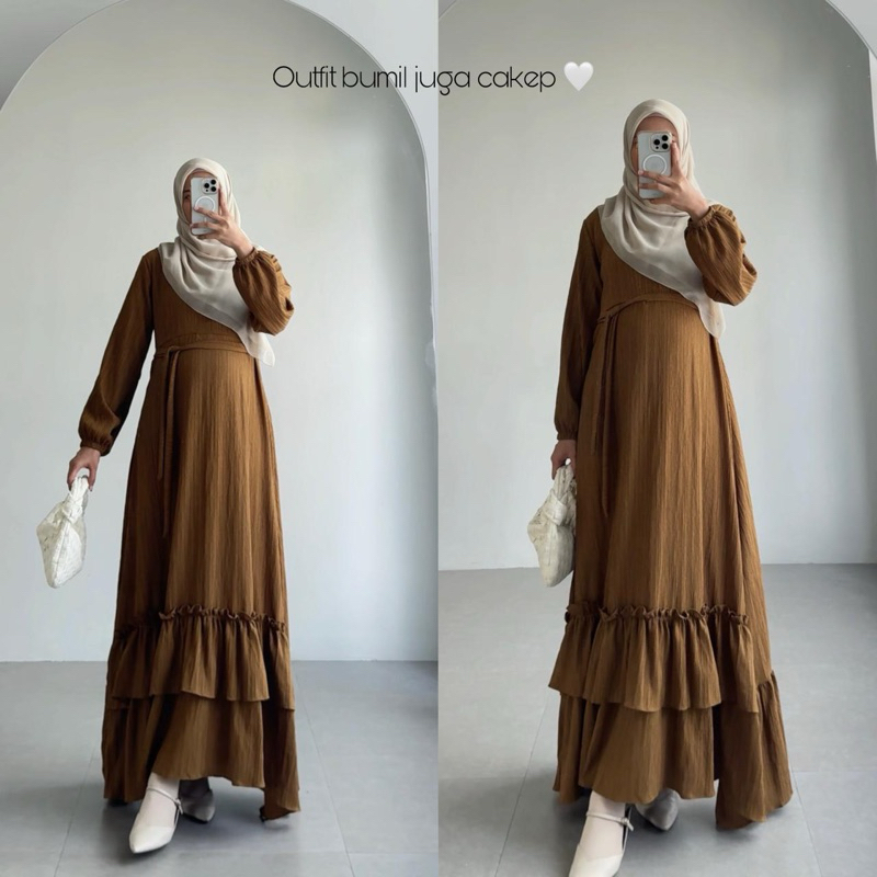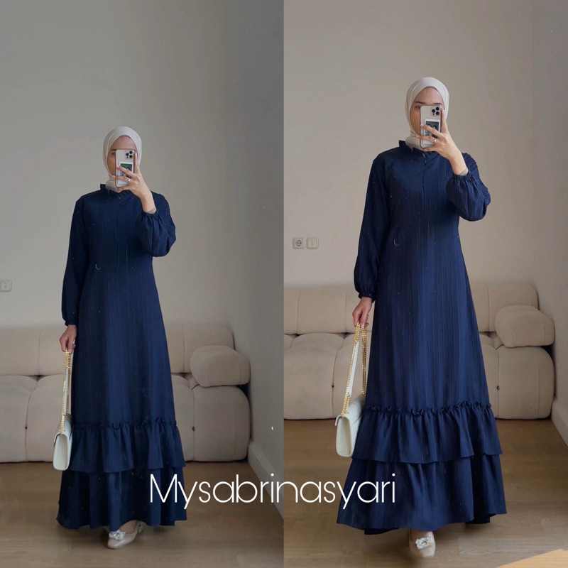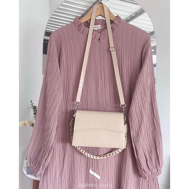 ( RAMADHAN SALE ) GAMIS ALUNA by SABRINA - DRESS REMPEL BAWAH BAHAN LADY CRUSH / HITAM MUSTARD DUSTY PINK / SIZE M XL