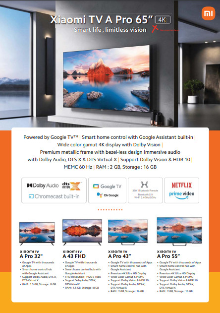 XIAOMI MI TV A PRO 43" 2025 4K QLED 60HZ GOOGLE TV SMART TV DOLBY AUDIO GARANSI RESMI - A 2025 43", BUBBLE WRAP