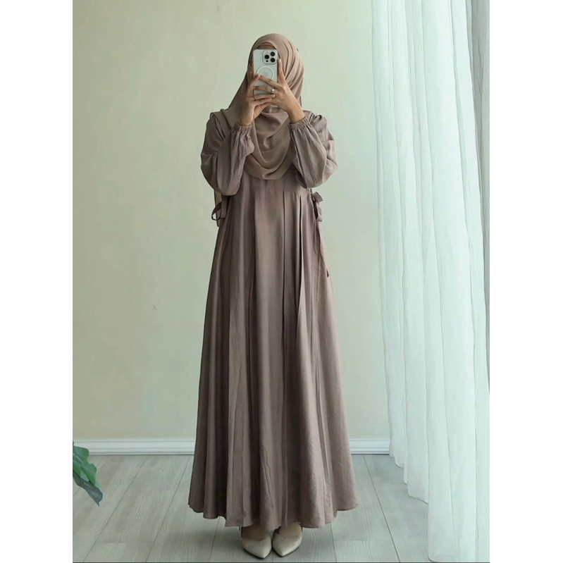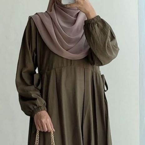 ( RAMADHAN SALE ) NARAYA DRESS by SABRINA - GAMIS POLO LINEN PREMIUM / HITAM MOCCA MAROON ARMY / SIZE M XL