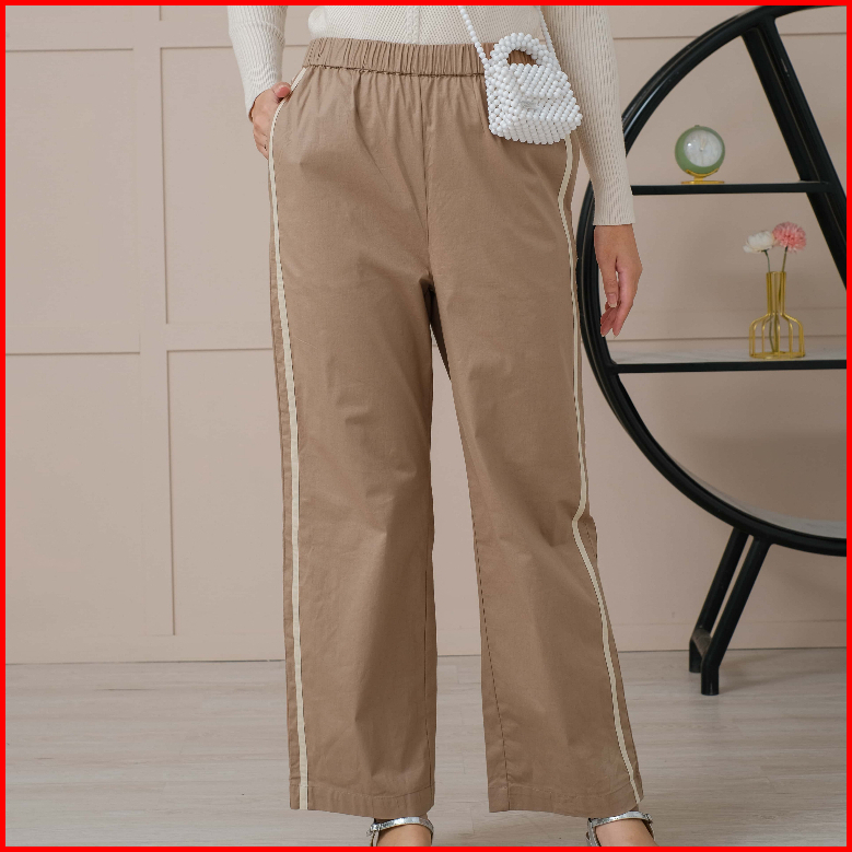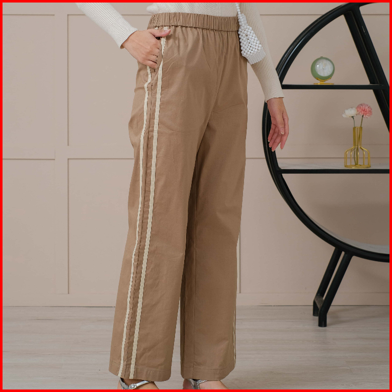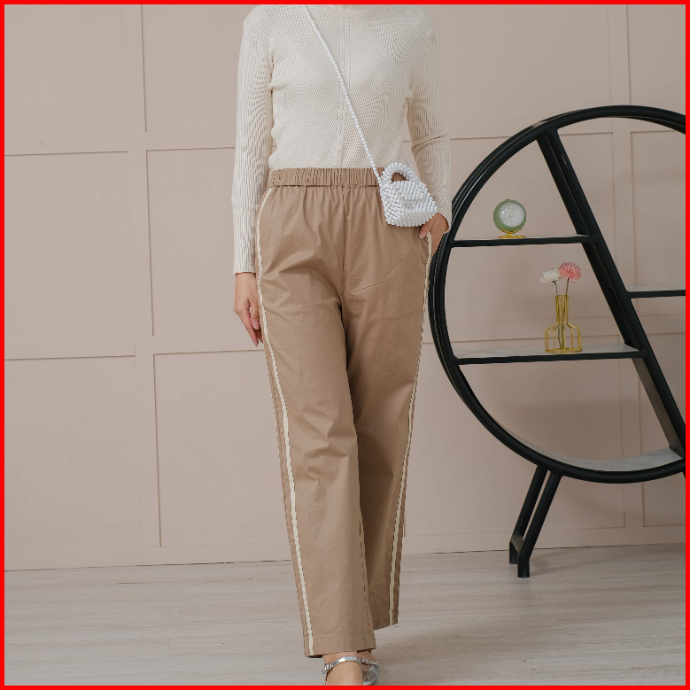 Mayoutfit Vicky Pants Celana Wanita Pinggang Karet Garis Pinggir