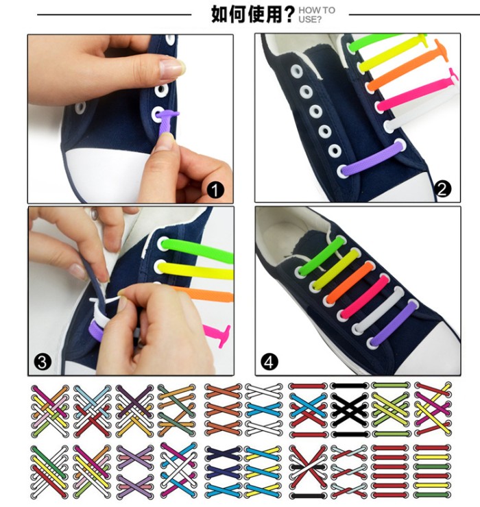 LL10 TALI SEPATU SILIKON KARET ISI 16 SHOELACE SILICONE LAZY LACE - BLACK