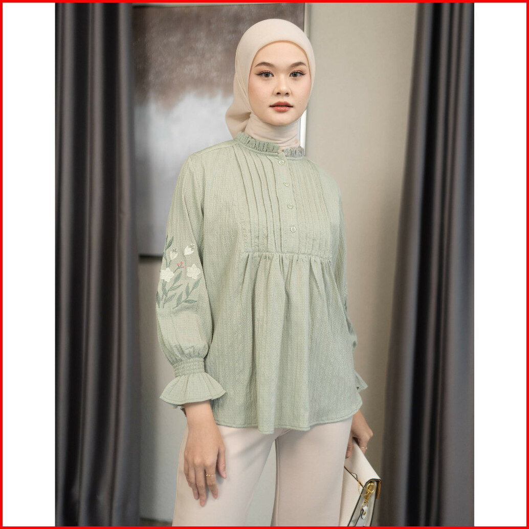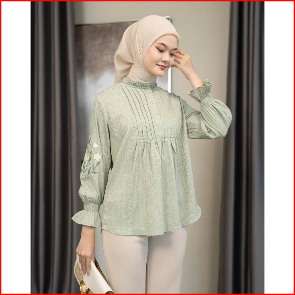 Mayoutfit Skylar Blouse Blus Crinkle Wanita Kerah Frill Embroidery