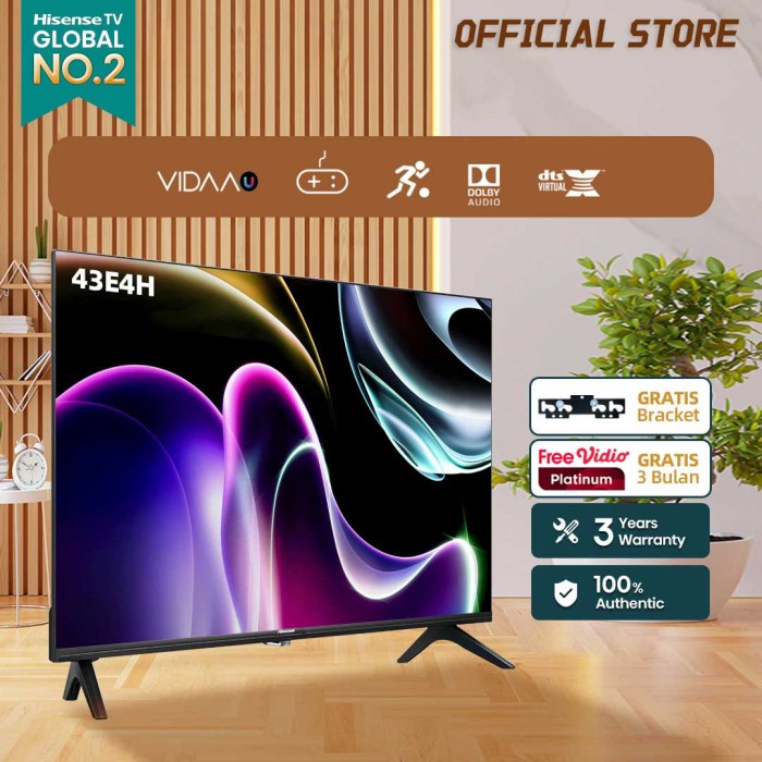 HISENSE 43 INCH VIDAA SMART TV-BEZELLES DESIGN-DUAL BAND WIFI - 43E4H