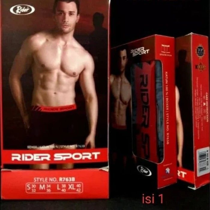 Boxer Rider Sport R 763 B isi 1 | Celana Dalam Pria | Pakaian olahraga - WARNA RANDOM S