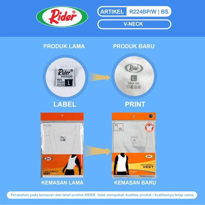 Singlet Pria Rider R 224 Putih 100% Cotton Combed Isi 1 - Putih M