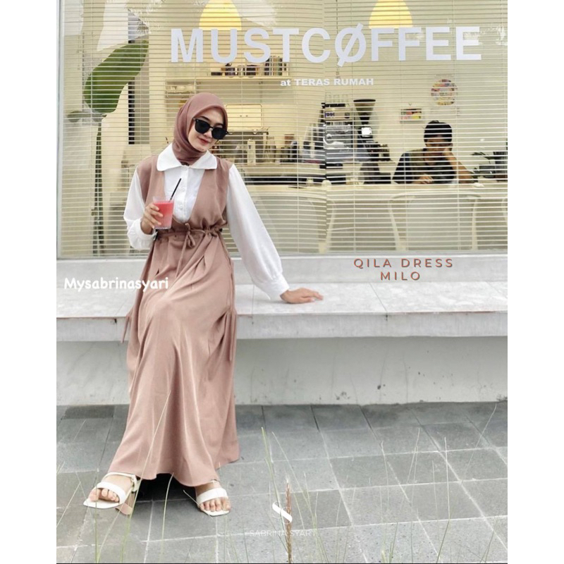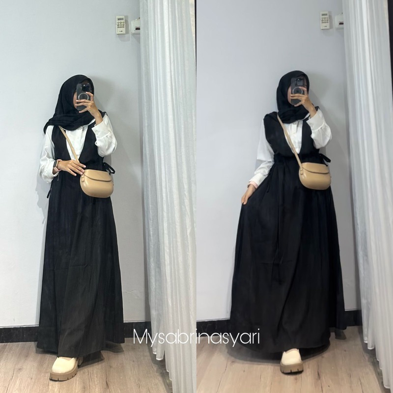 ( RAMADHAN SALE ) QILA DRESS by SABRINA - GAMIS OVERALL POLOS KOREAN STYLE SLEVELESS / MILO NAVY HITAM CAPPUCINO