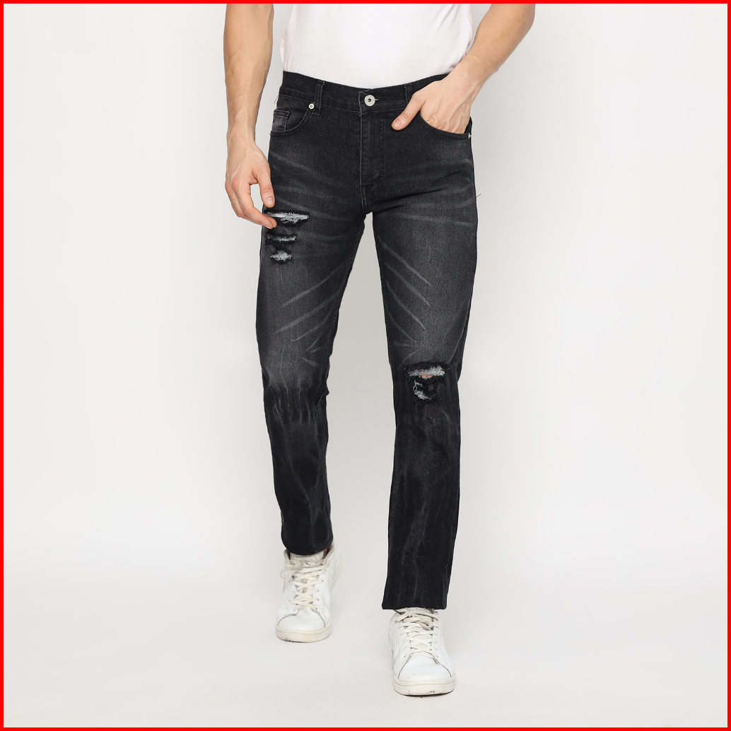 Trondheim Celana Jeans Pria Denim Libor Ripped Whisker Black Indigo