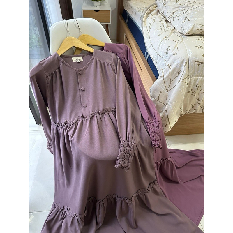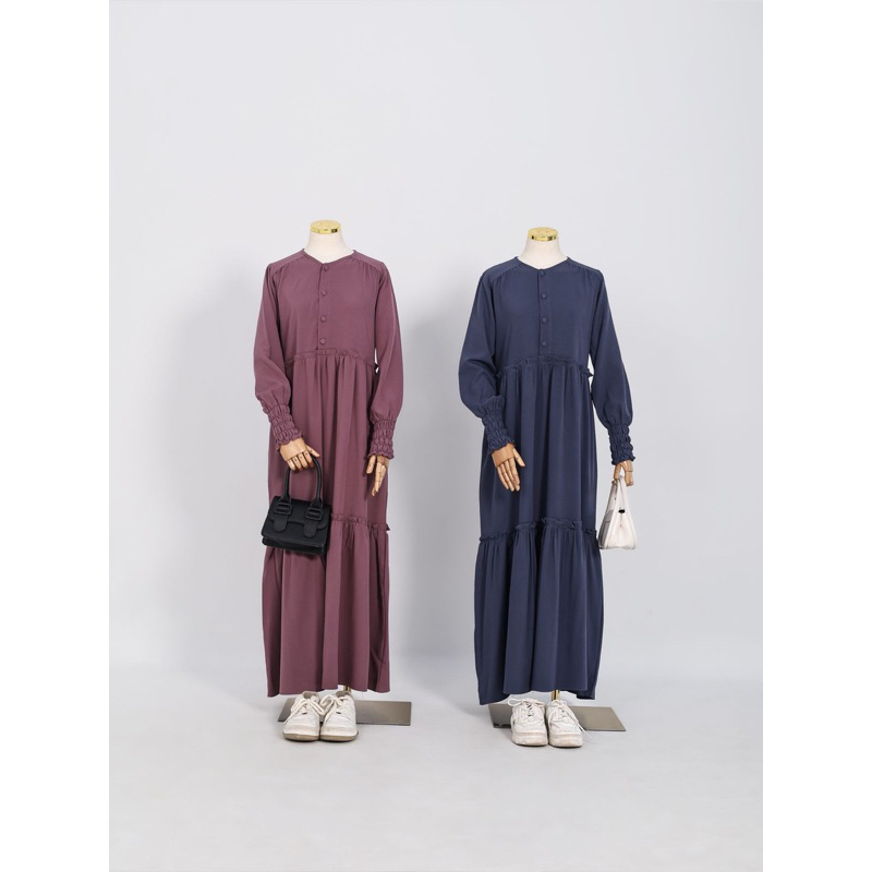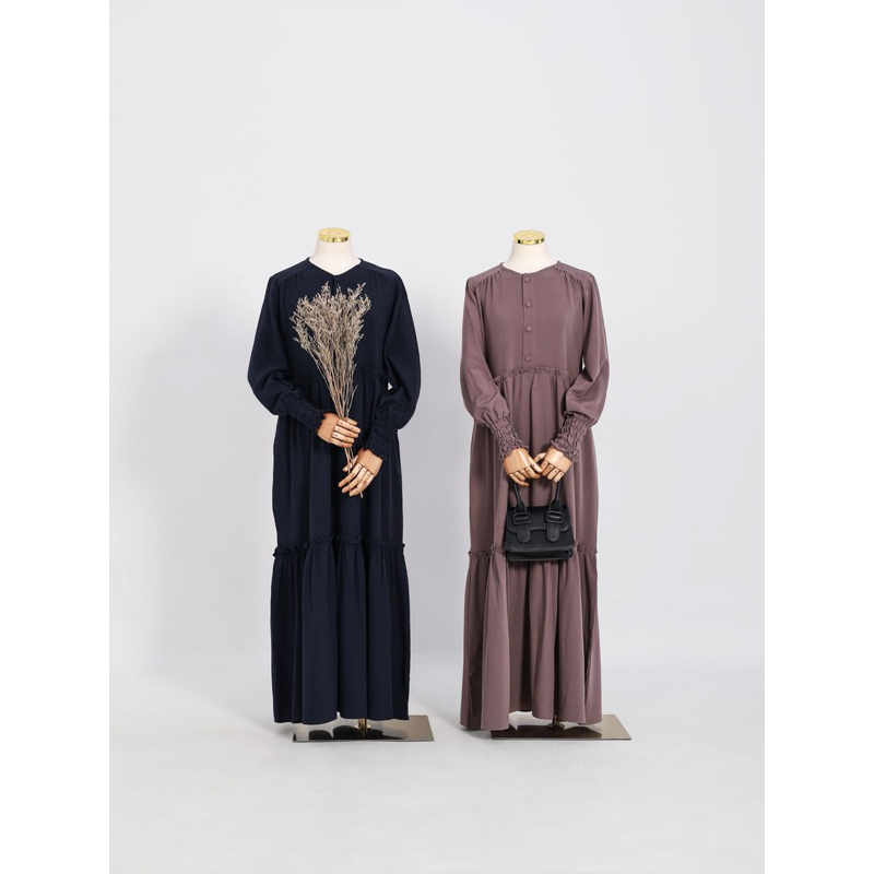 ( RAMADHAN SALE ) ARUNA DRESS by SABRINA - GAMIS WANITA POLOS REMPEL BAHAN LINEN STRECH / HITAM LATTE BW ROSETAUPE